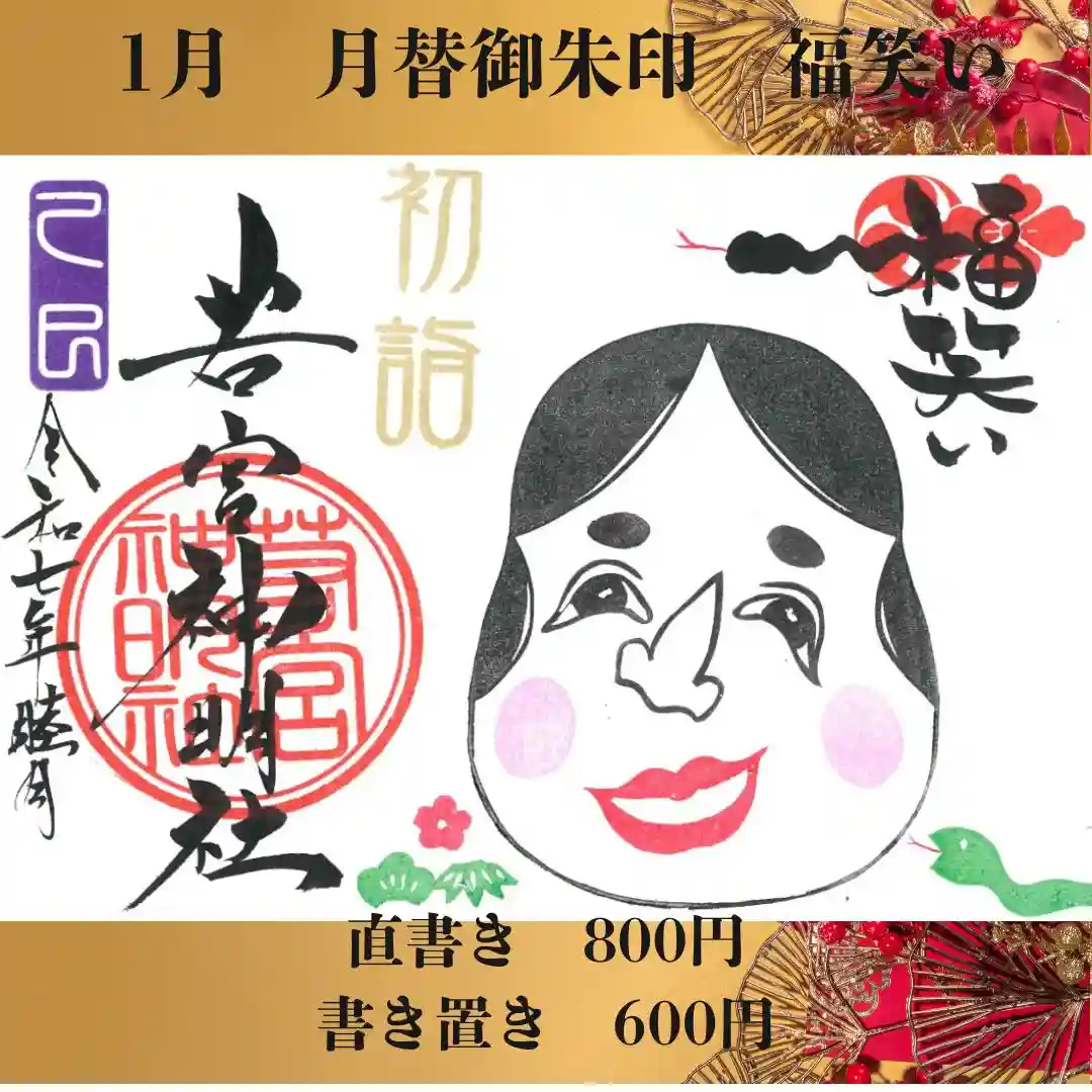 1/1~31日まで。初穂料は直書き800円 書き置き600円です。
