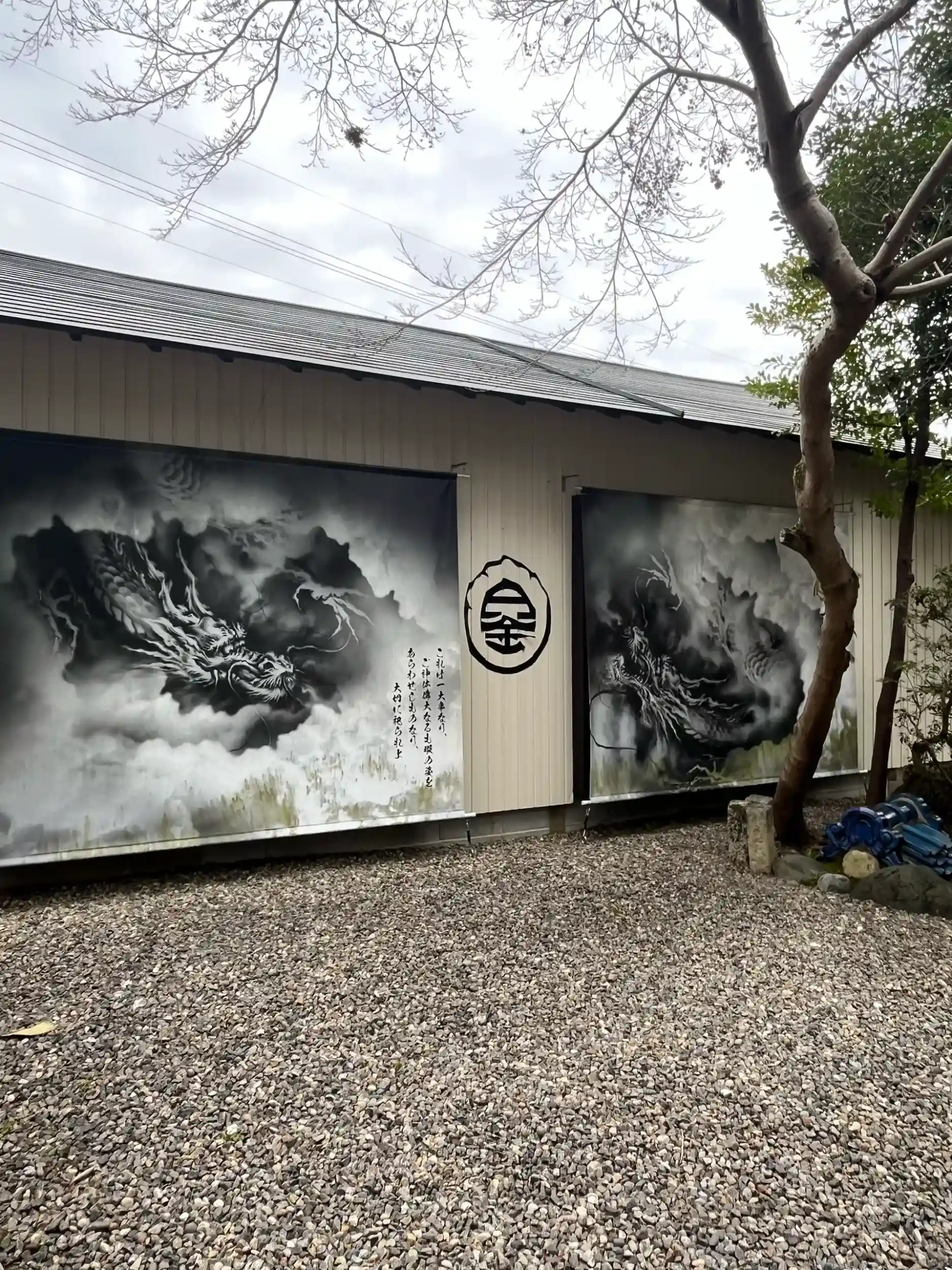 傘が鮮やか。白金龍神さま、壁画が素晴らしい