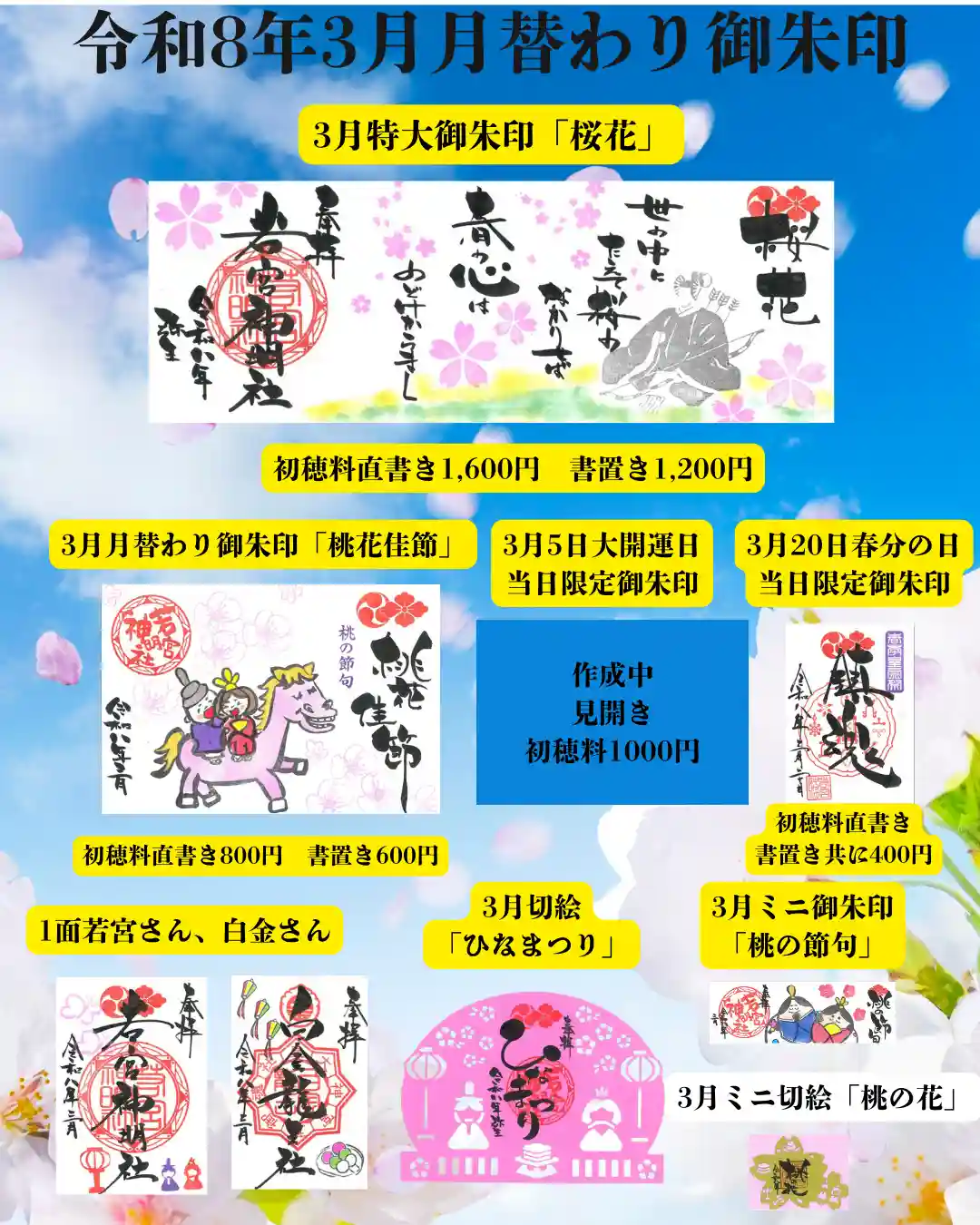 3月特大御朱印と3月御朱印一覧表です。