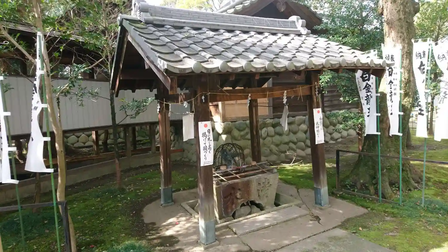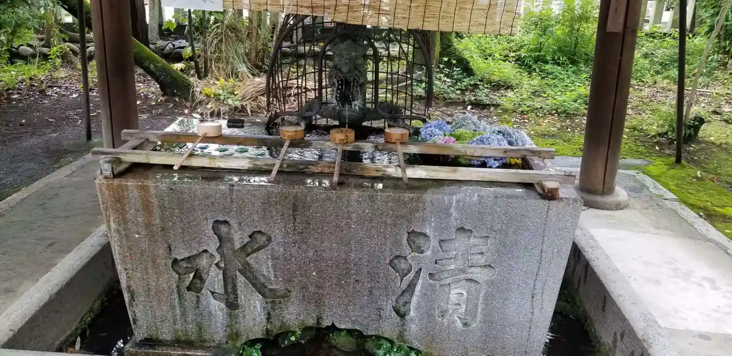 手水舎、白龍神社の鳥居がしっかり映えてました。