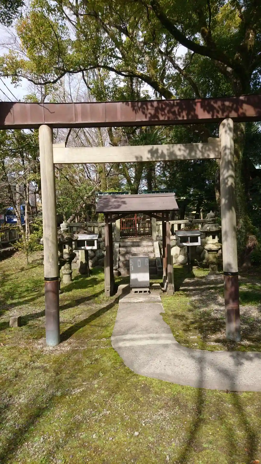奥まったところにあります。狭い道もありますので気をつけて。駐車場は、鳥居の前の方にあります。