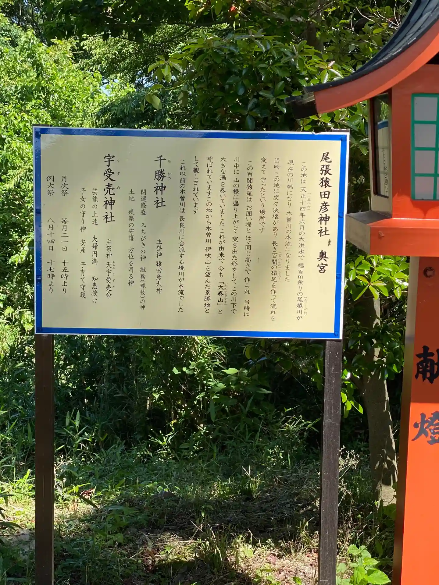 | ご由緒 | 若宮神明社 五等級 【創建】文禄年中(1593年~96年頃)後陽成天皇(第百七代)の時代 【御祭神】 天照皇大神 素戔嗚尊(合祀) 【境内末社】 豊受大神宮 秋葉神社 白金龍王社 万度御祓社 創建月日は不詳であるが後陽成天皇の時代文禄年間と云われている。文禄年間に木曽川堤が幾度か決壊氾濫し、住民大いに困窮に至る為、伊勢神宮大麻を奉斎し、万度の祓いを治めたところ川瀬変じて田畑になったと云う。万度社は此の時の決壊箇所とも云われる。住民は此の神宮の御稜威を仰ぎここに神明社を建立し奉祝したものと伝えられる。 其の後にも、明治年間の美濃方面からの大竜巻が木曽川を超えて襲来したが、当神社付近にて消滅し事無きを得たことや、大東亜戦争末期の米軍による一宮一帯の大空襲においても、数十発の大型焼夷弾が投下されたが、一発として発火することなく不発に終わり火災を受けたものは一戸もなかった事、当神社に落下した爆弾も不発に終わった事は大きな奇跡であり、氏子崇敬者一同の崇敬の念が高まり奉賛会を組織することとなった。 また本神明社と伊勢の神宮とは殊の外関係が深く、御厨地として毎年上納してきた。神宮式年遷宮の御用材御神木の筏船着場ともなっており、御送迎の祭典を熱心に執り行ってきた。昭和二十九年第五十九回式年遷宮の際には御用材古材を拝領し、其の中には別宮滝原宮の大鳥居があった為、神明社の西側木曽川堤防に伊勢神宮遥拝所を建設し御神徳を仰ぎ奉った。 神社格の歩み 昭和十九年 村社神明社から若宮神明社に社名変更 昭和二十二年 七級社に決定 昭和二十六年 五級社に昇級 |