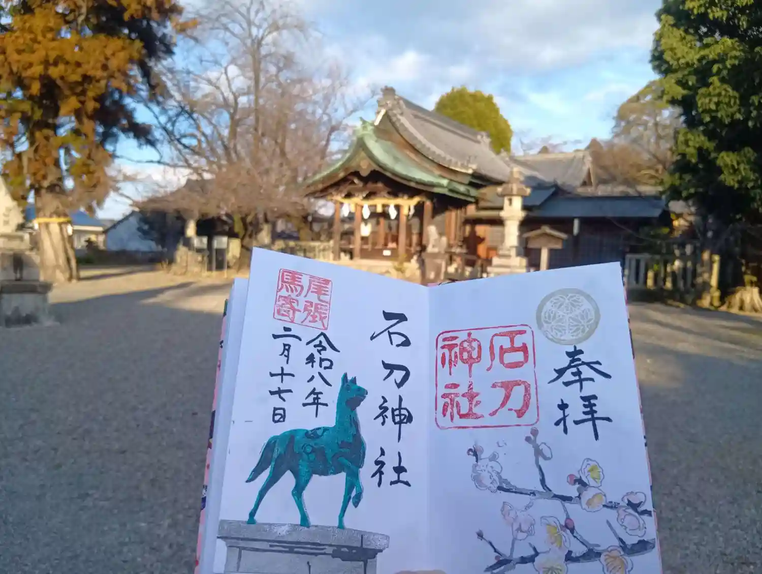 愛知県一宮市今伊勢町馬寄石刀に鎮座する「石刀神社」(いわとじんじゃ)へ初参拝させていただきました。「手力雄命」(たぢからおのみこと)をお祀りする、古墳の上に本殿が鎮座する神社です。本殿が西を向いており、西に一の鳥居があり、長い参道と、奥行きのある本殿、本殿の東側には森が広がる長く広い境内を持ちます。参道は桜並木で春には美しい桜をみることができます。6月には境内に千本以上ある紫陽花が咲きます。また多くの貴重な植物をお育てになっていらっしゃいます。生花と折り紙で装飾された手水舎が、とてもきれいでした。素晴らしい干支の絵がありました。お雛様とお着物も展示されており、心が和むとても心地良く感じる場所でした。狛犬さんが5組並んでいました。本殿の東側にある森の遊歩道を散策させていただき、ご家族で手作りなさった石畳の道を歩かせていただきました。様々な石を組み合わせてとてもおもしろいデザインでした。ミツバチの巣箱もありました。授与所にて、直書きの「季節の花御朱印」(1,000円)、書置きの「石刀祭」「干支」「龍神社」御朱印(各500円)をいただきました。直書きの通常御朱印(500円)もあります。御朱印を書いてくださった方が、神社にまつわるおもしろいお話をたくさんしてくださいました。神社や参道の桜や紫陽花の写真も見せてくださいました。ぜひ、自分の目で見てみたいと思いました。心身共に癒される、とても居心地の良い神社でした。またぜひ、参拝させていただきたいと思います。境内の南側に、参拝者専用駐車場が24台分ほどあります。