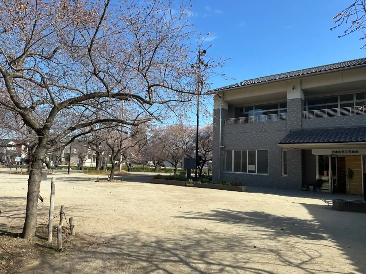 《児童館》 境内奥にあります。広場に植っているのは桜でしょうか。春になると綺麗に咲きそうですね。