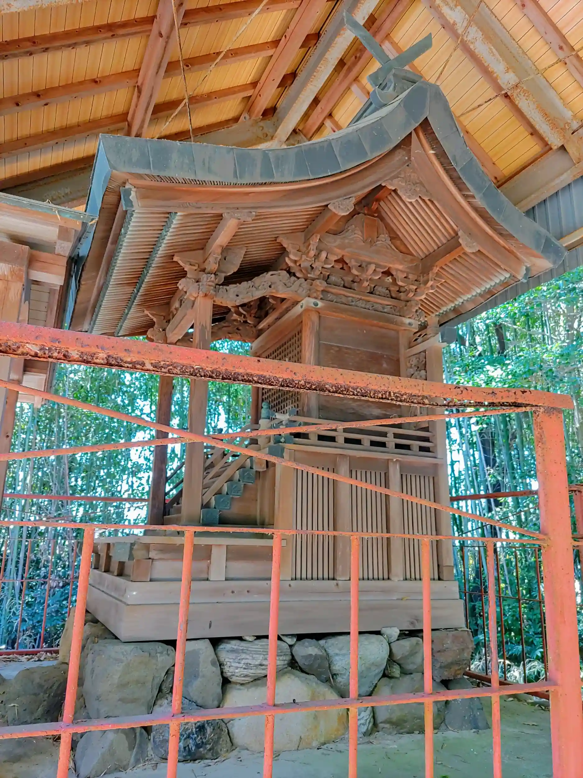 鳥居をくぐり、拝殿までの参道は竹やぶに覆われています。この参道に歴史を感じたりなんかしちゃって。