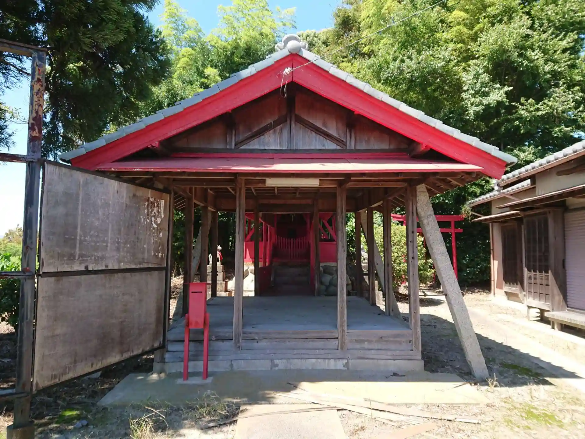 周りは畑なので、離れたところからも赤い鳥居がよく見えます。