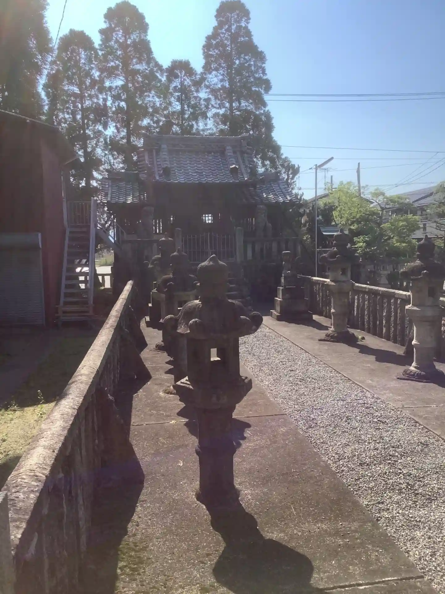 日の入りの眩しさで、良い感じで新しい狛犬が撮れず