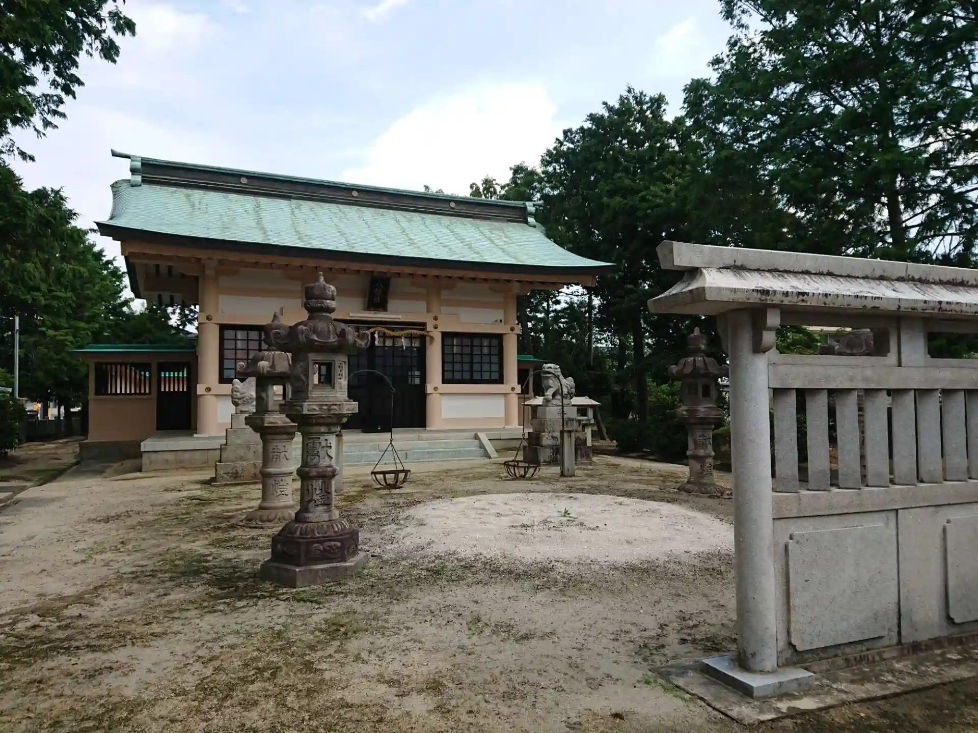 参道が長く蕃塀の奥には綺麗な社殿があります。