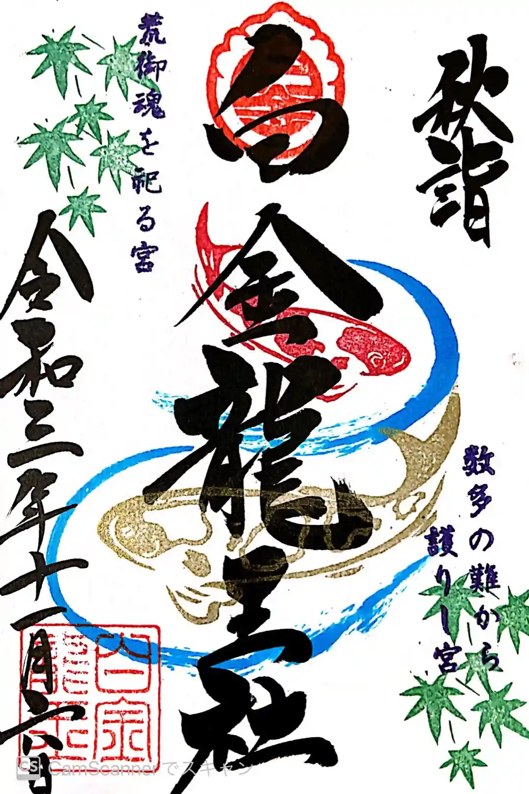 2022年10月の白金龍王社祭の限定御朱印(書置き)