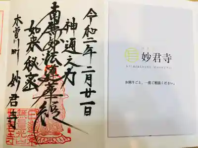 妙君寺の御朱印・御朱印帳コレクション全1枚