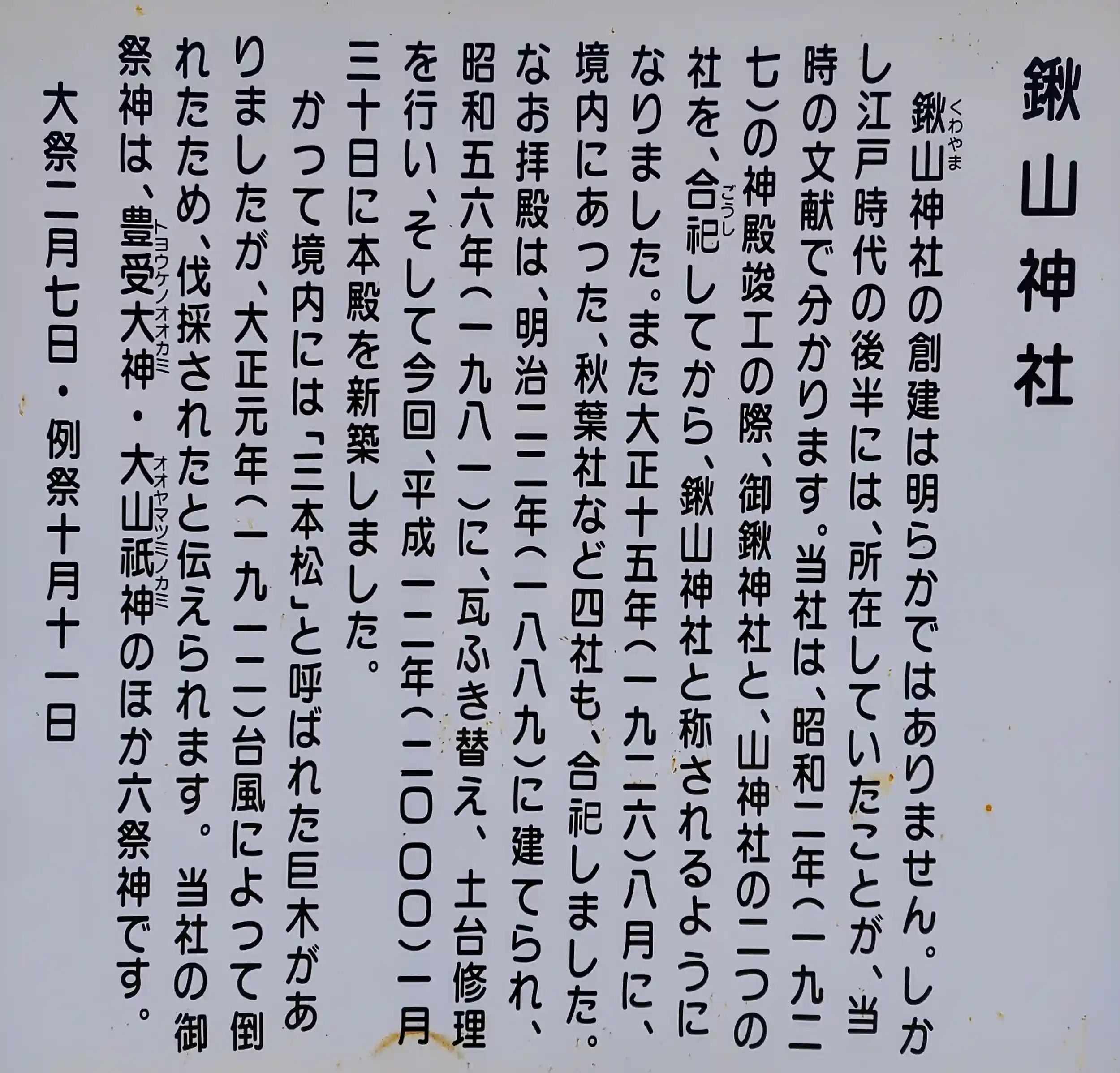 御鍬社+山神社=鍬山神社ということらしいです。