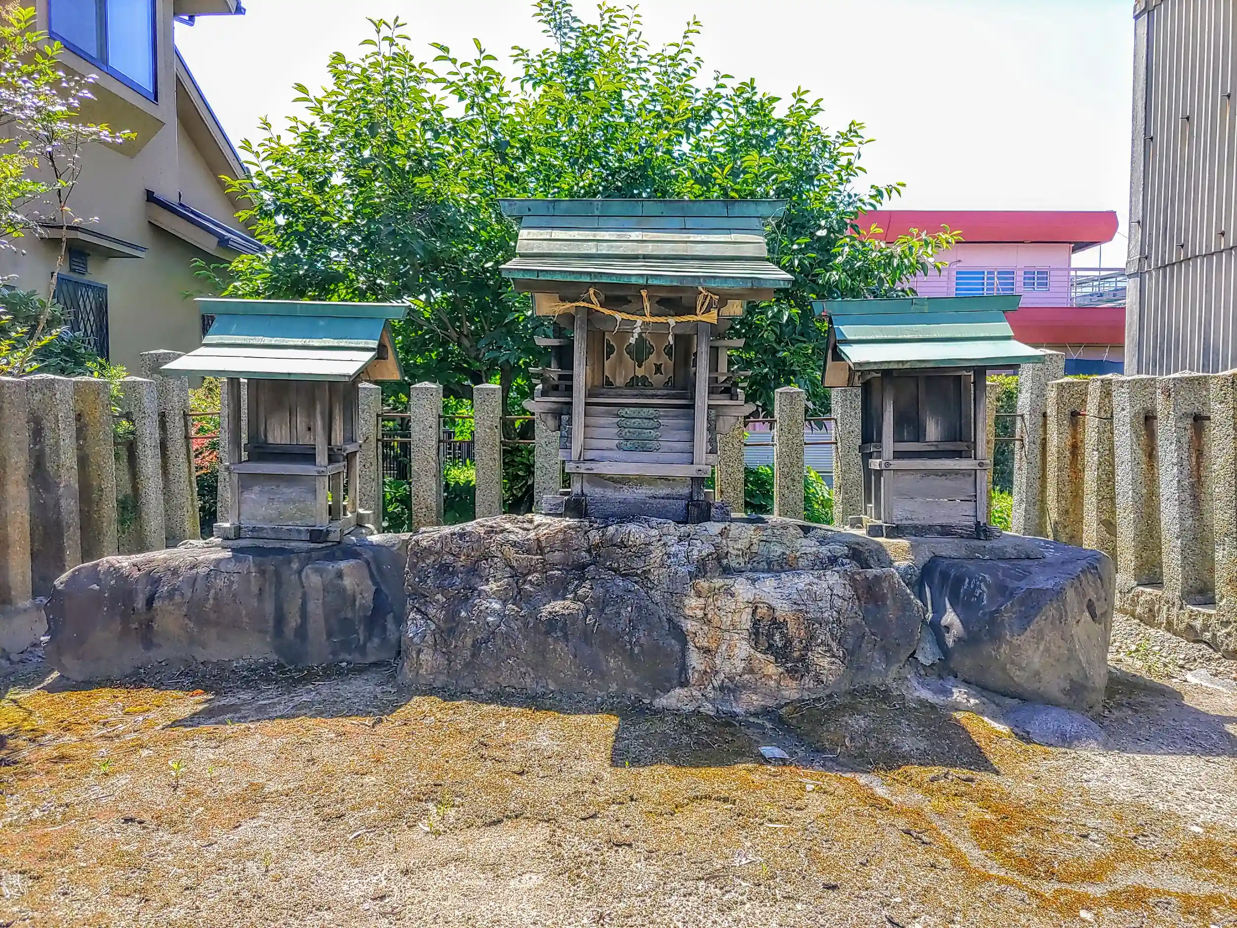 建物と建物の間に挟まれた神社さんです。