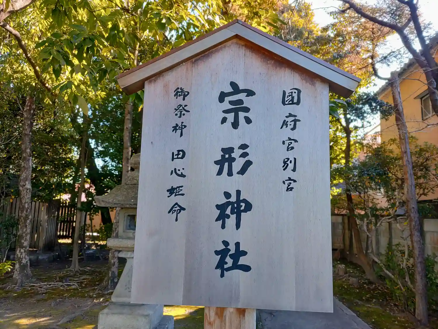「宗形神社」の社号標が国府宮の境内にありました。