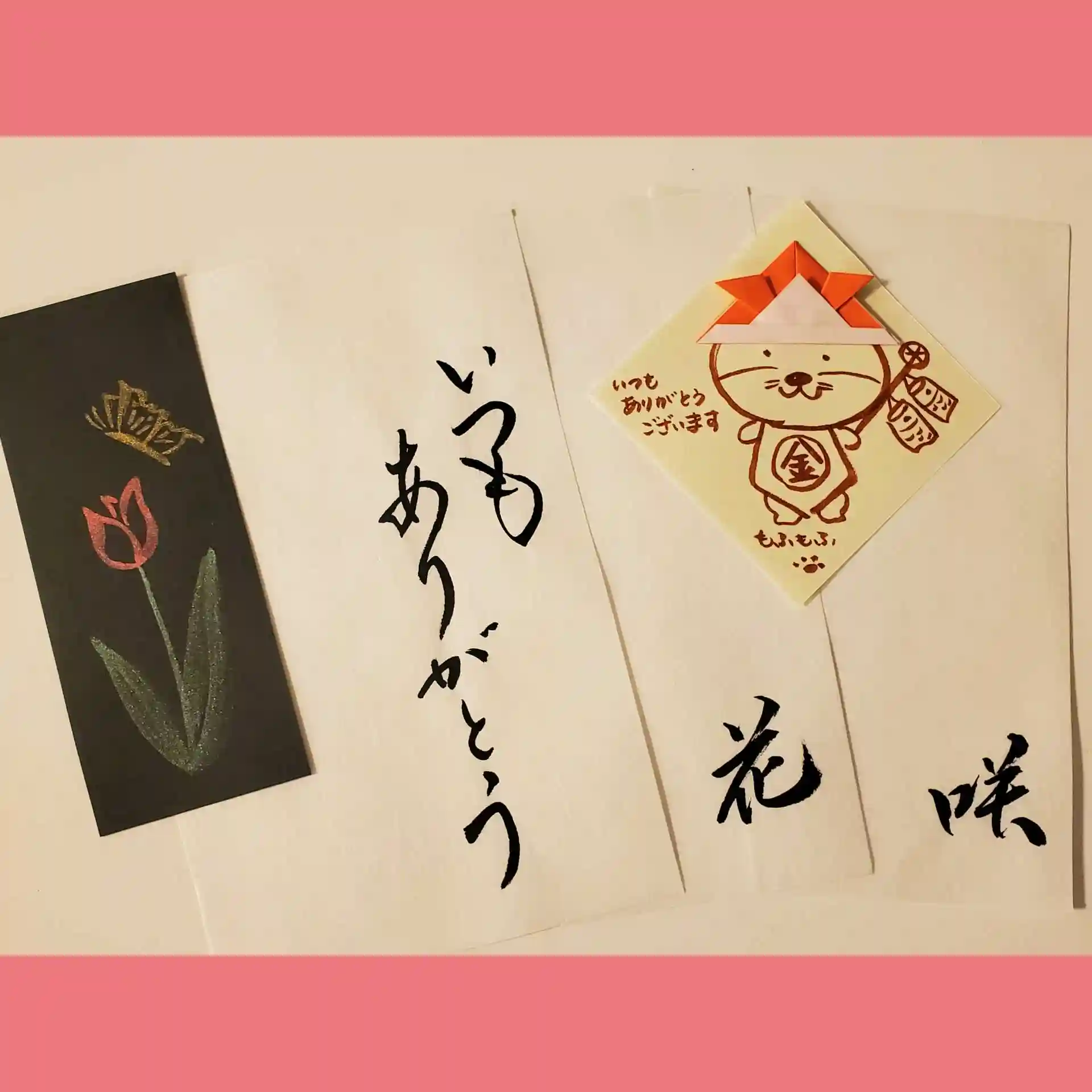 挟み紙にも素敵なメッセージを直筆で書いていただき、兜を被った可愛いメッセージとチューリップ🌷が描かれた栞も付いてました🎵
