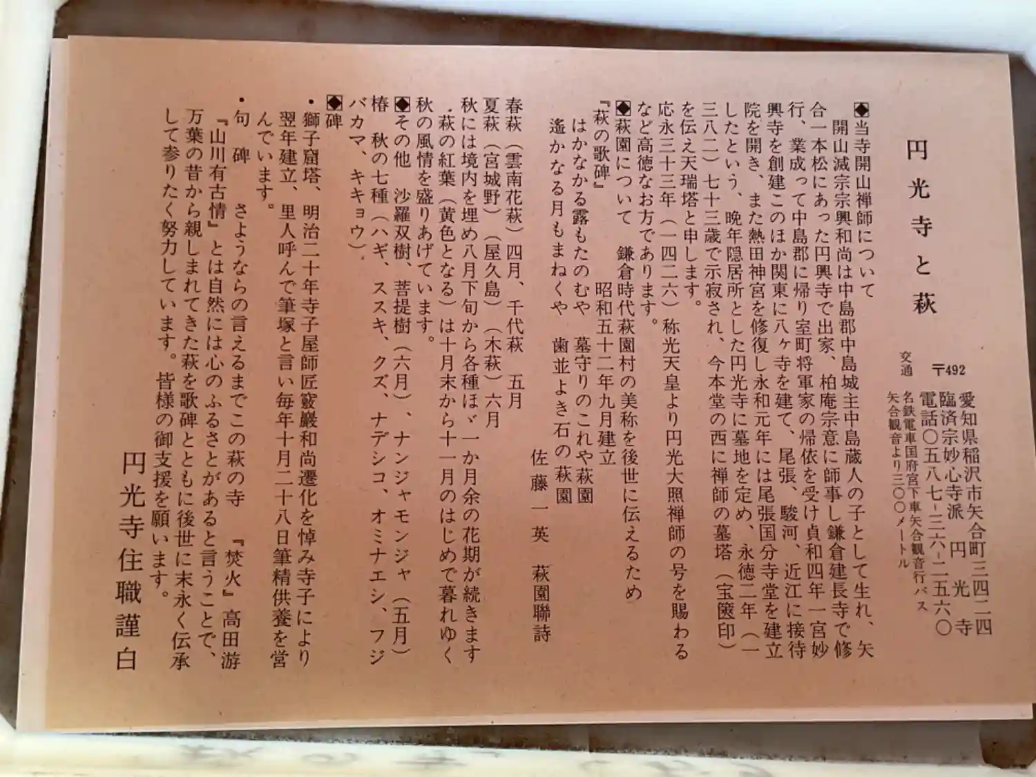 萩の寺の碑