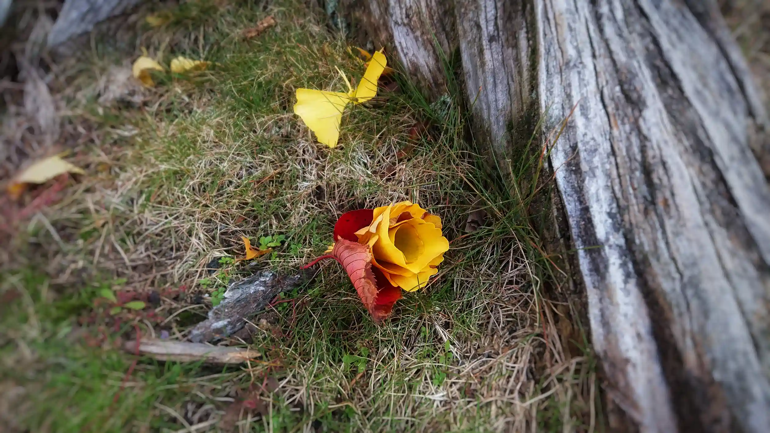 イチョウの葉で作った薔薇と蝶々、素晴らしいですね🤗