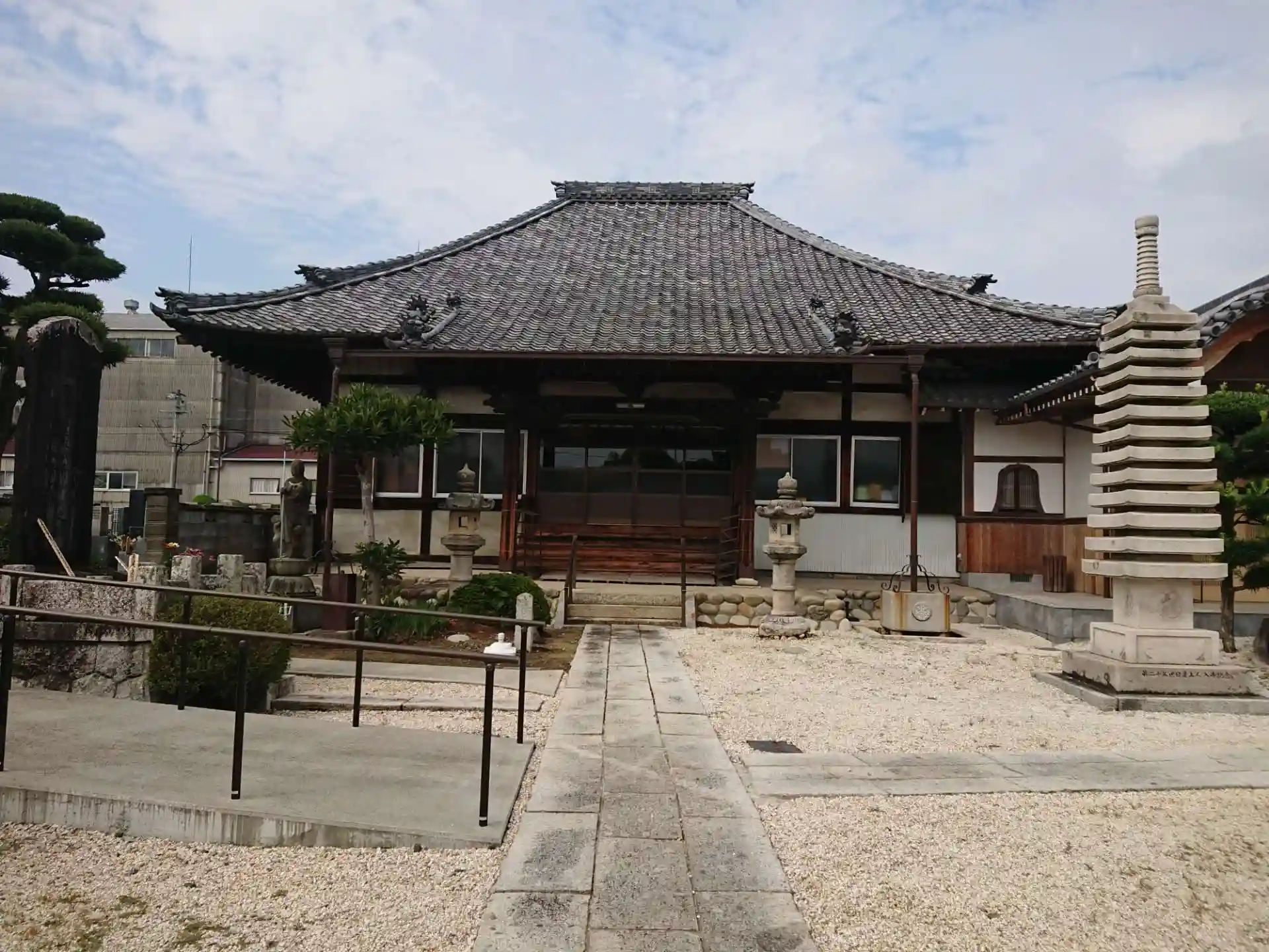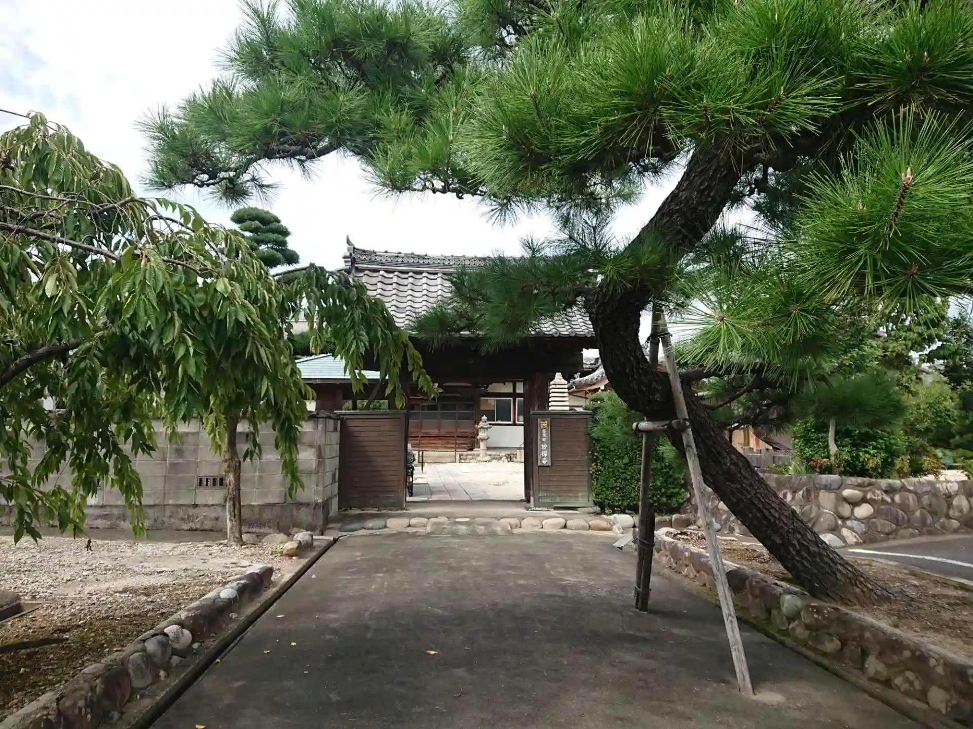 山門の前にある松が大きくて立派です。なので山門がよく見えません。その奥には立派な本堂があります。