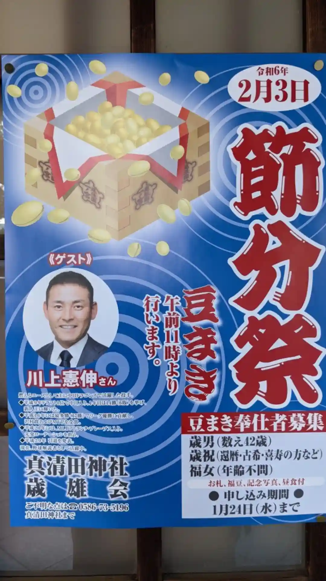 節分祭は寺院のイメージがあったのですが、真清田神社さんでは川上選手を呼ばれるそうですね。