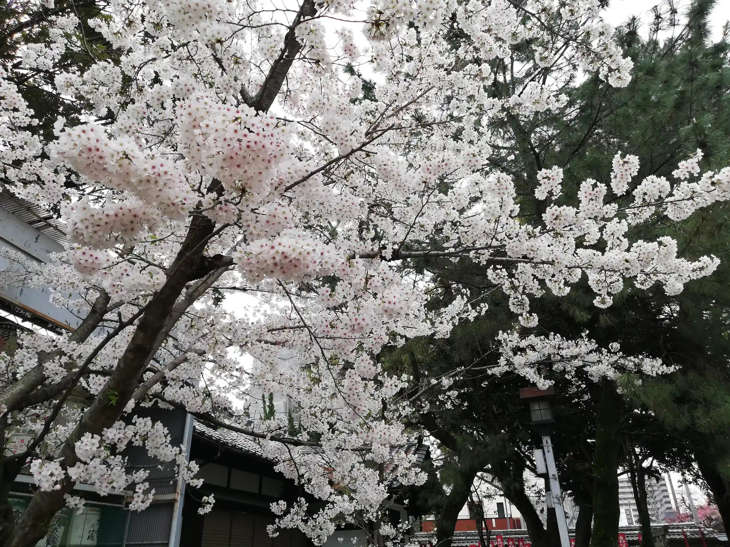 境内には桜は満開でした。来年はコロナなど気にせず花見が楽しめることを願って。