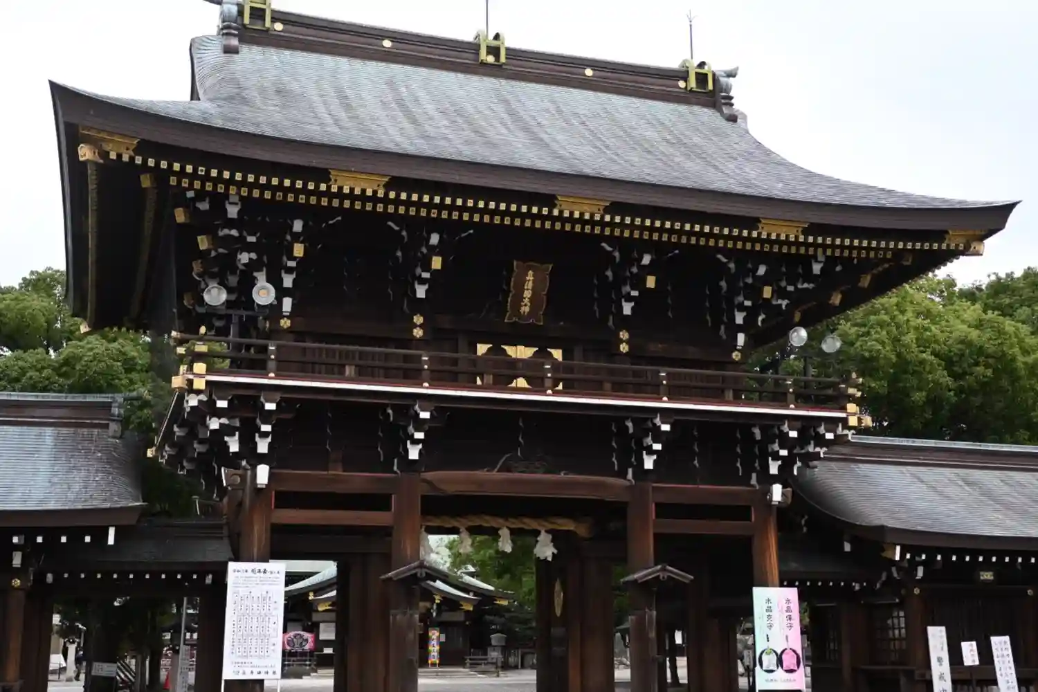 正面の鳥居と楼門。