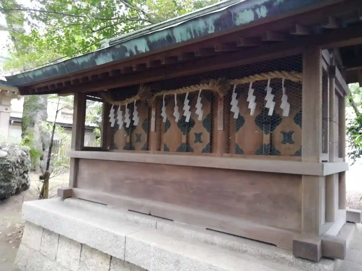 三末社。愛鷹社、天神社、犬飼社を祀ってあります。
