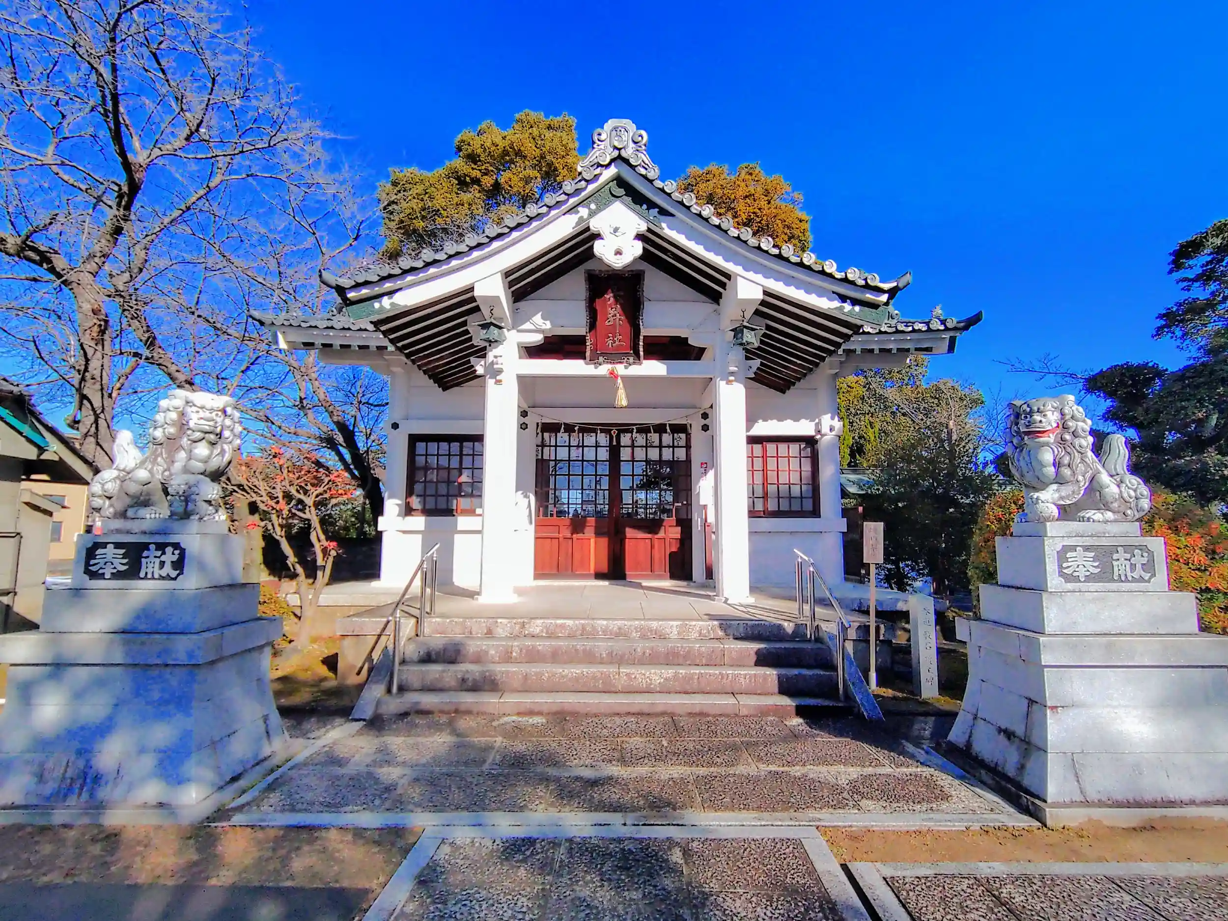 白い拝殿、青い空。なかなかのコントラストでした。