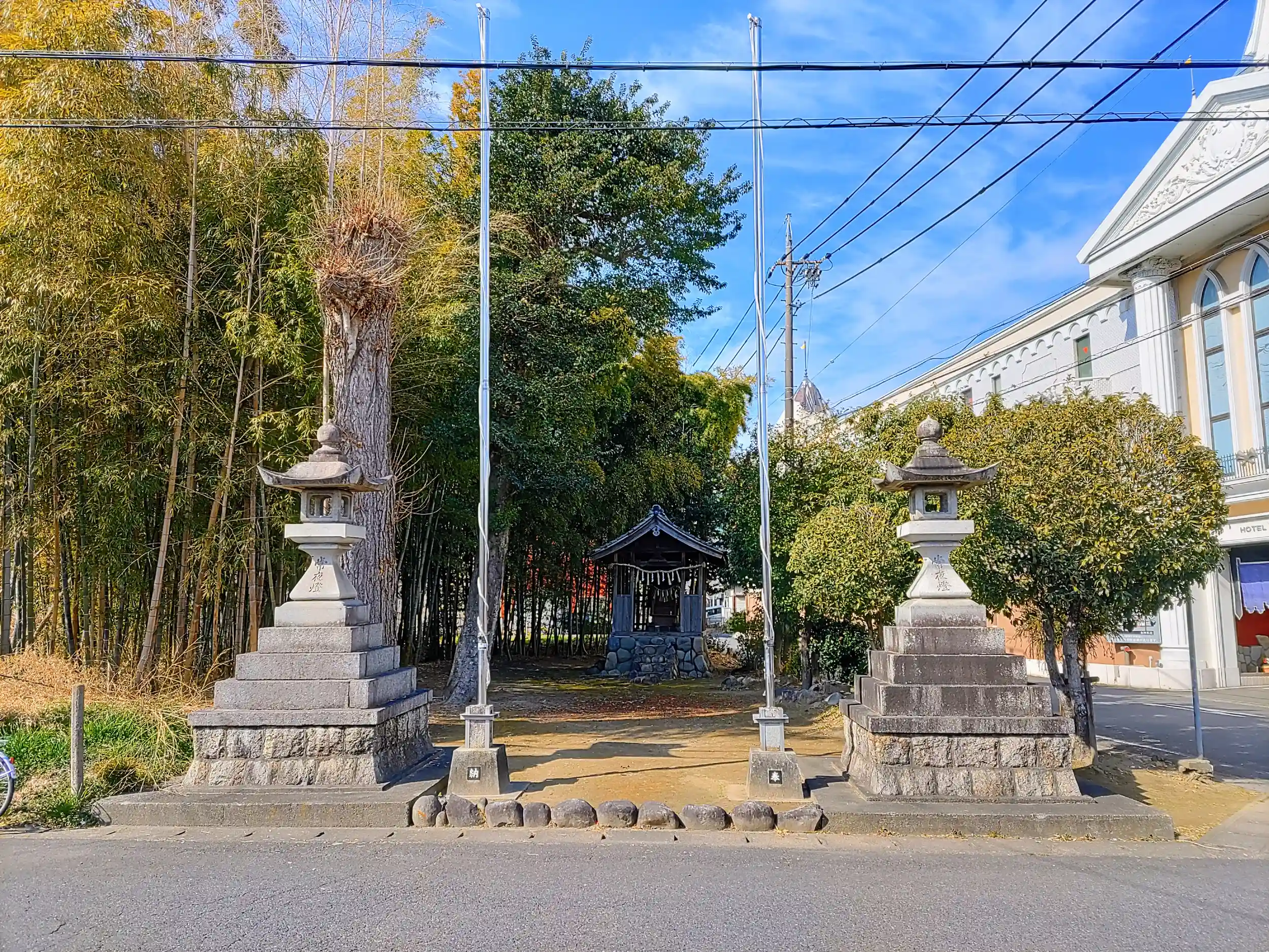 竹藪に囲まれた神社さんです。隣には大きなラブホが建ってます。