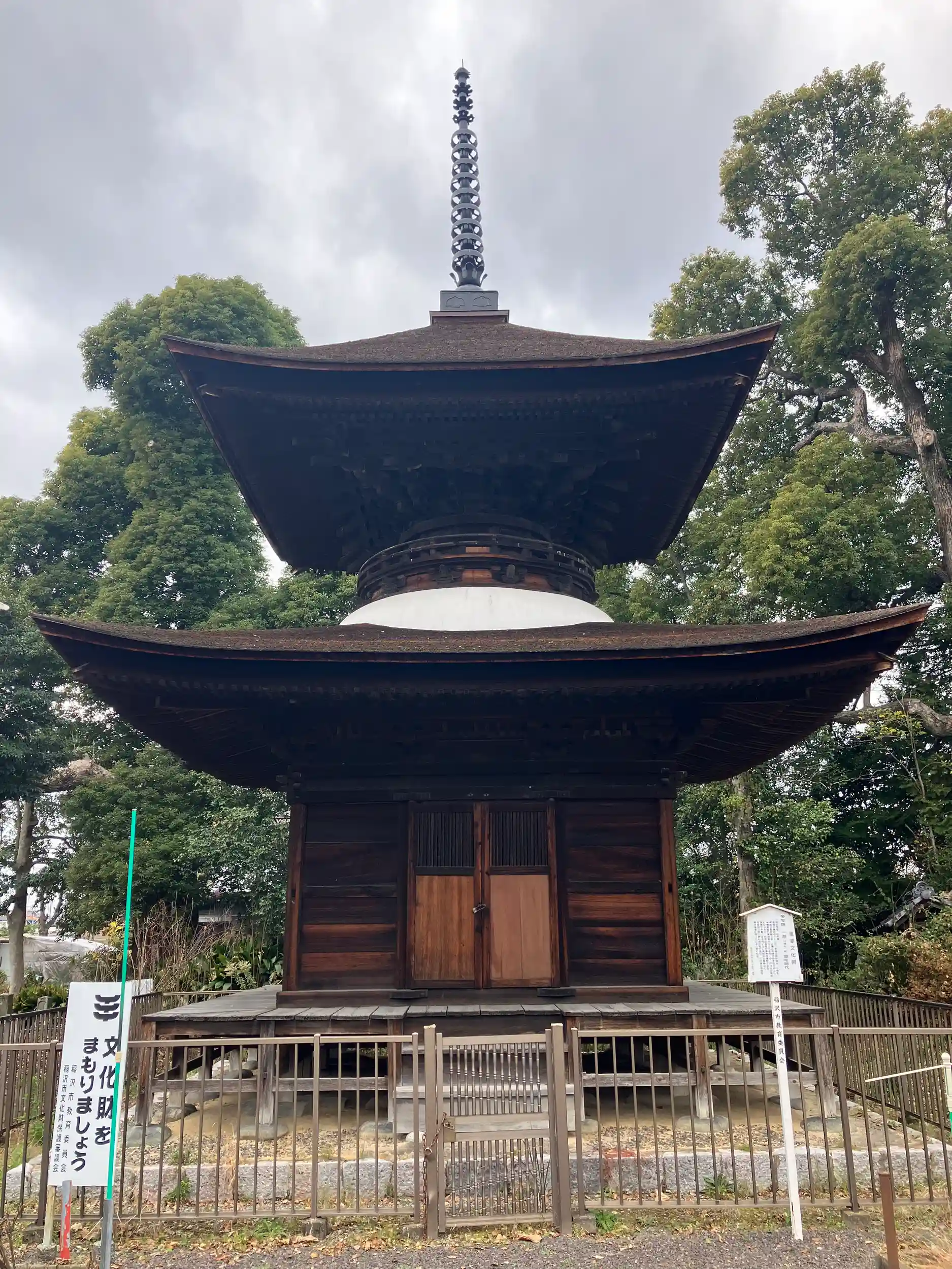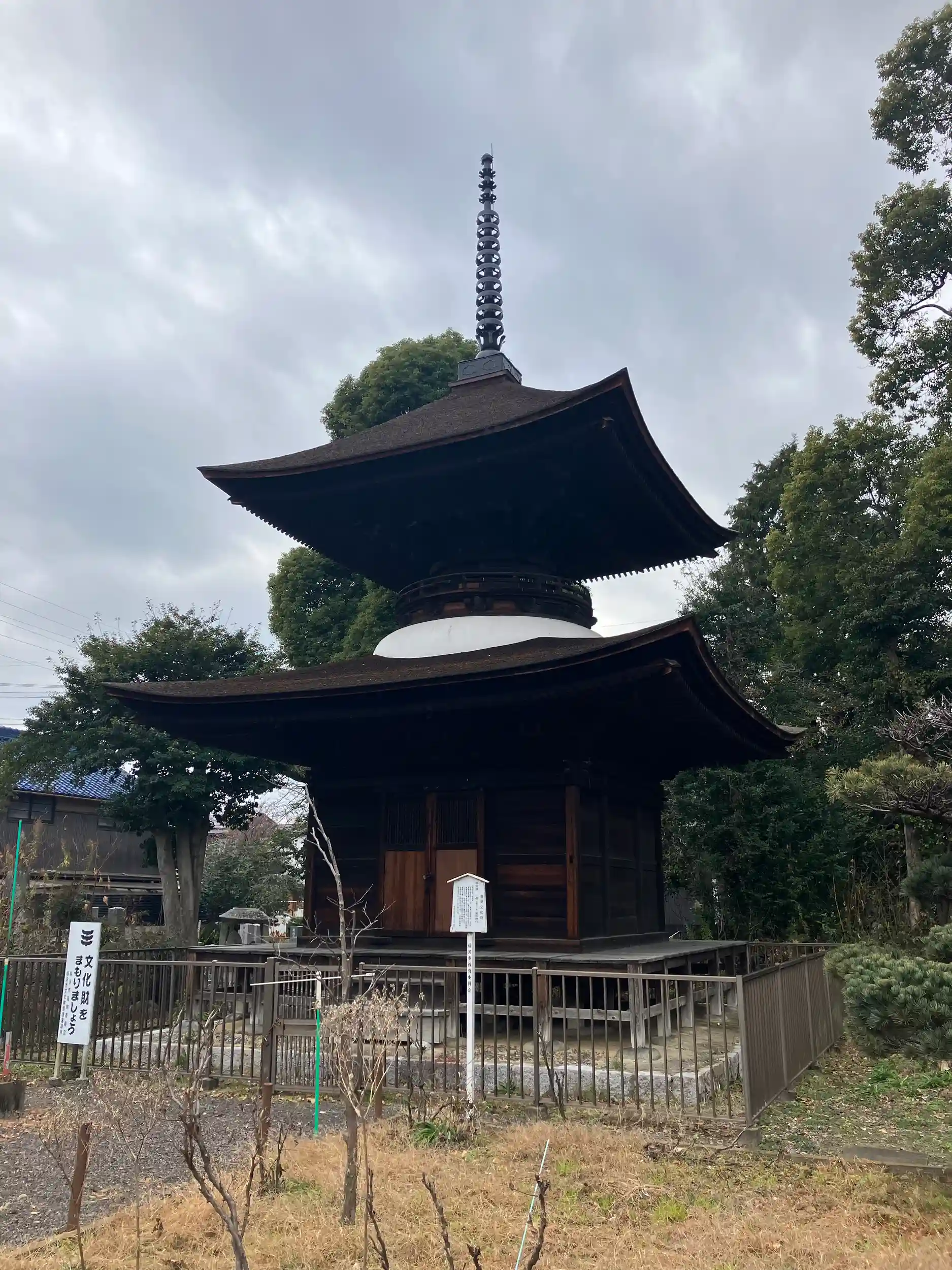 室町時代建築の多宝塔、1530年建立の鎮守堂は重文指定されている。