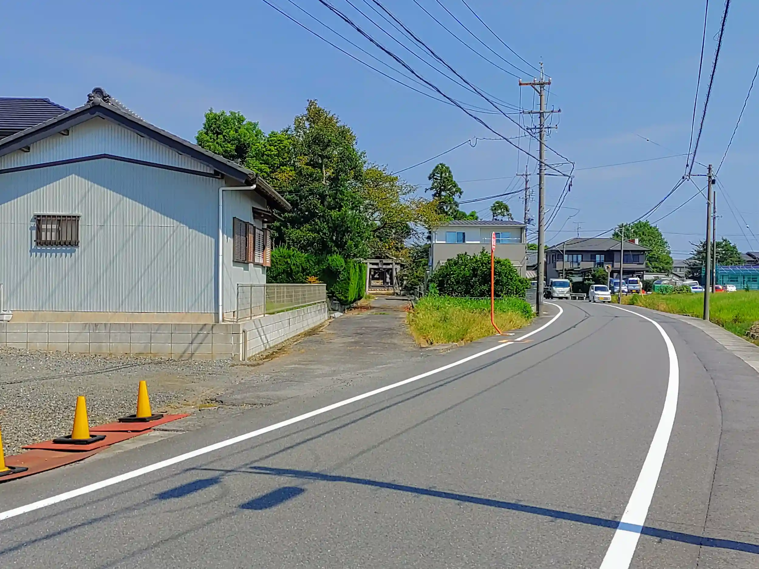 メイン道路から斜めに入って行くと鳥居が見えます。社号標は見当たらなかったです。コンパクトな八幡さんでした。