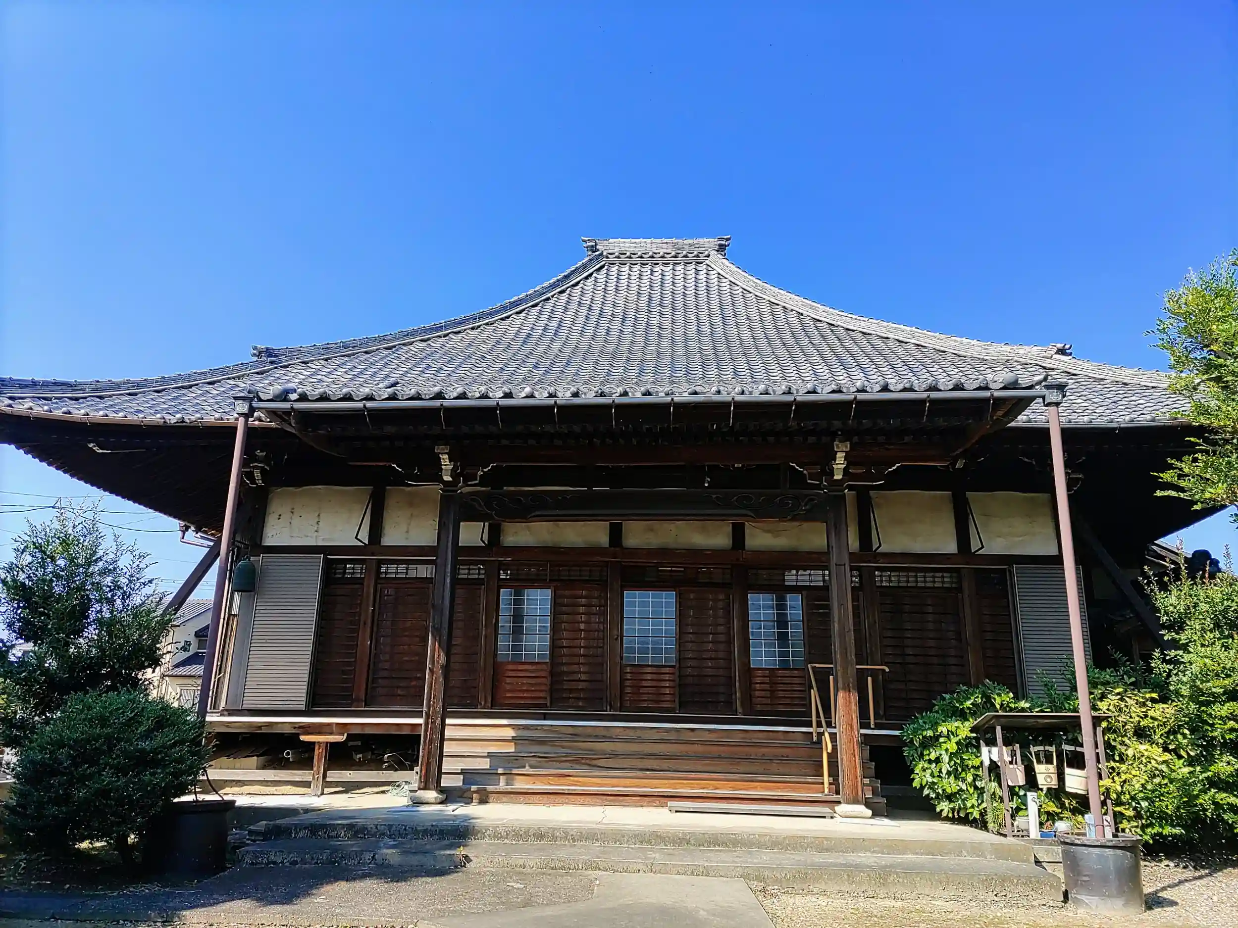遠くこらでもお寺の本堂の屋根が見えます。