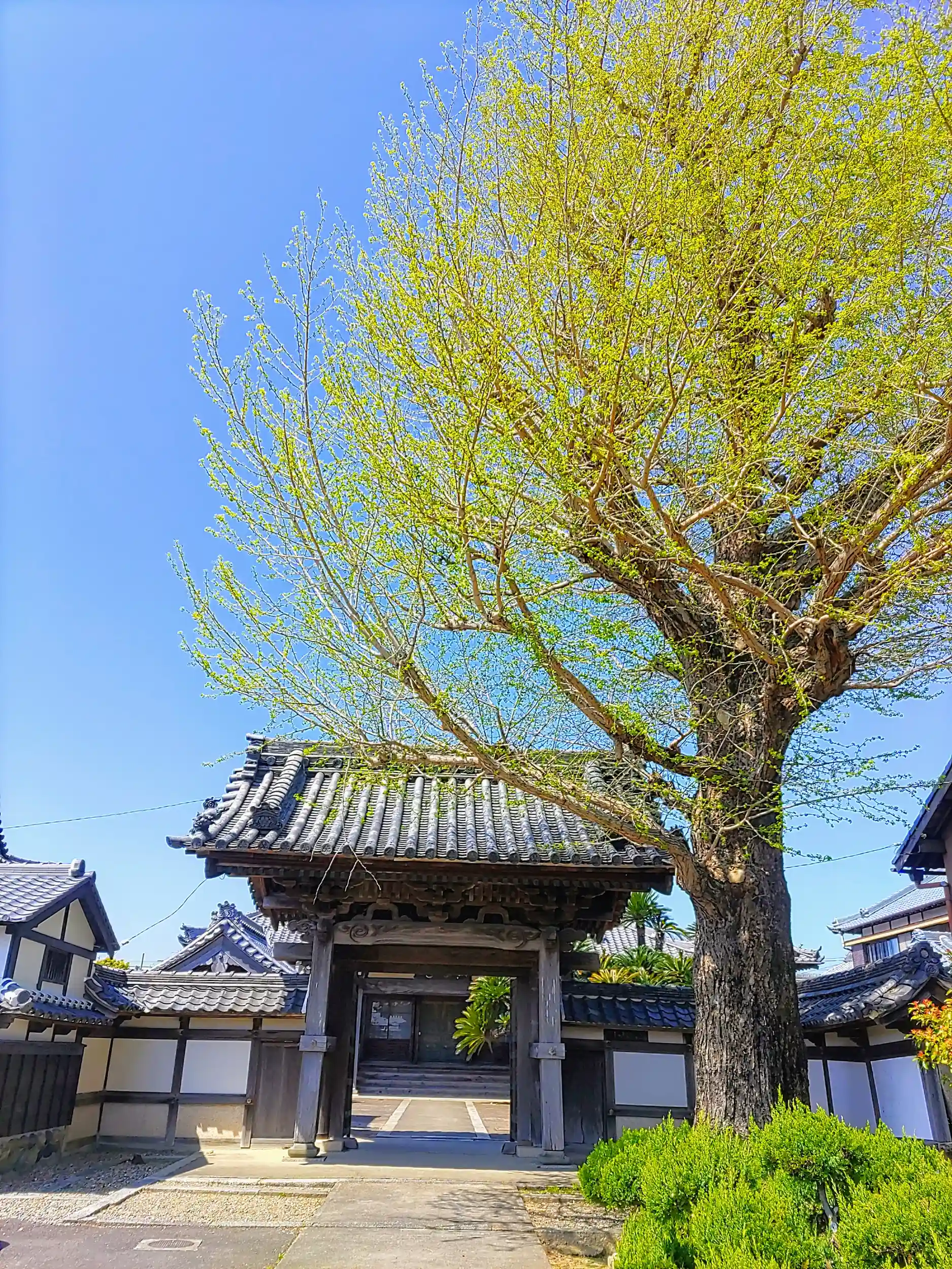 山門前の巨木が印象的。