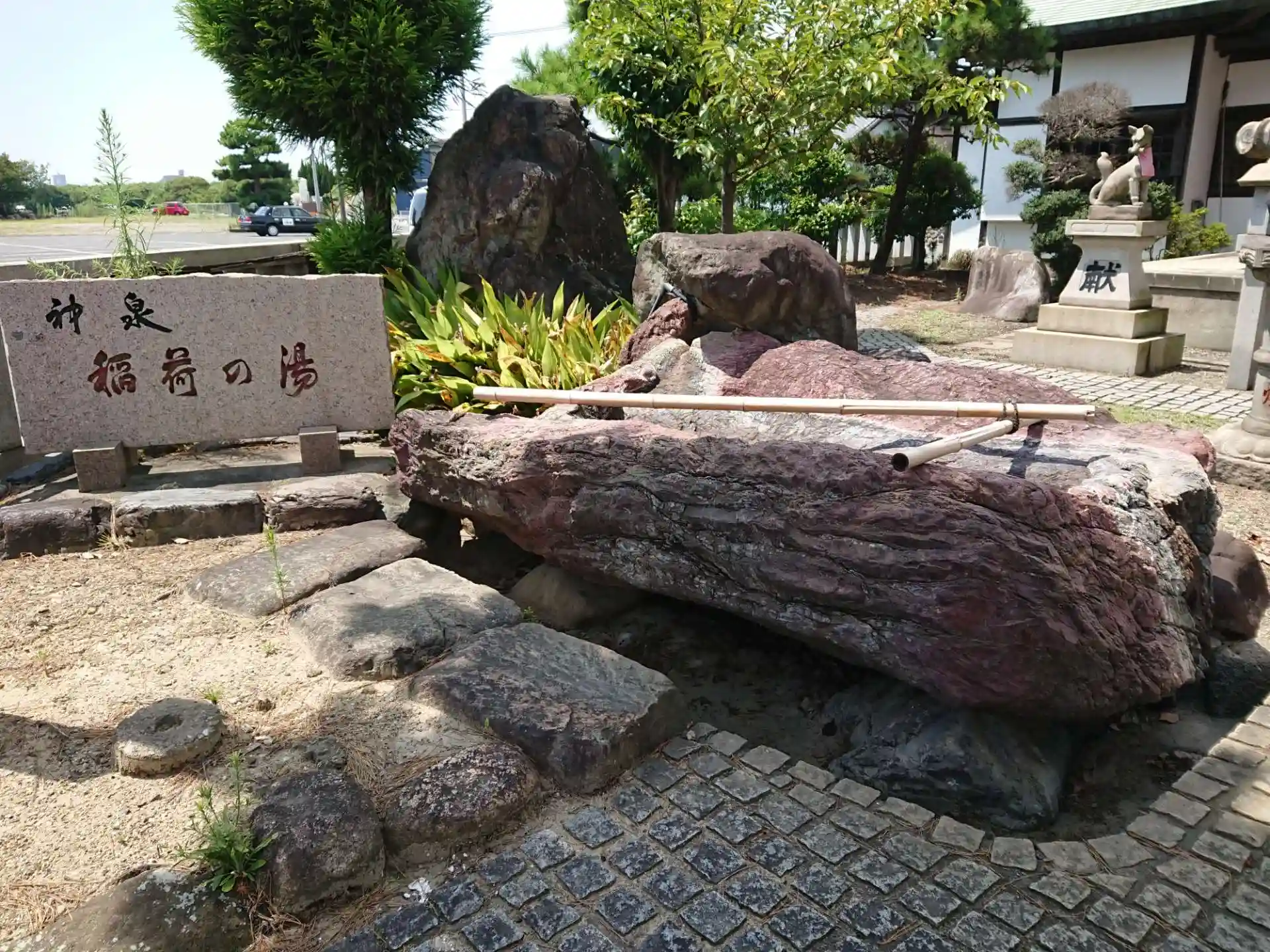 尾張温泉の駐車場の一角にあります。手水舎が温泉になっています。