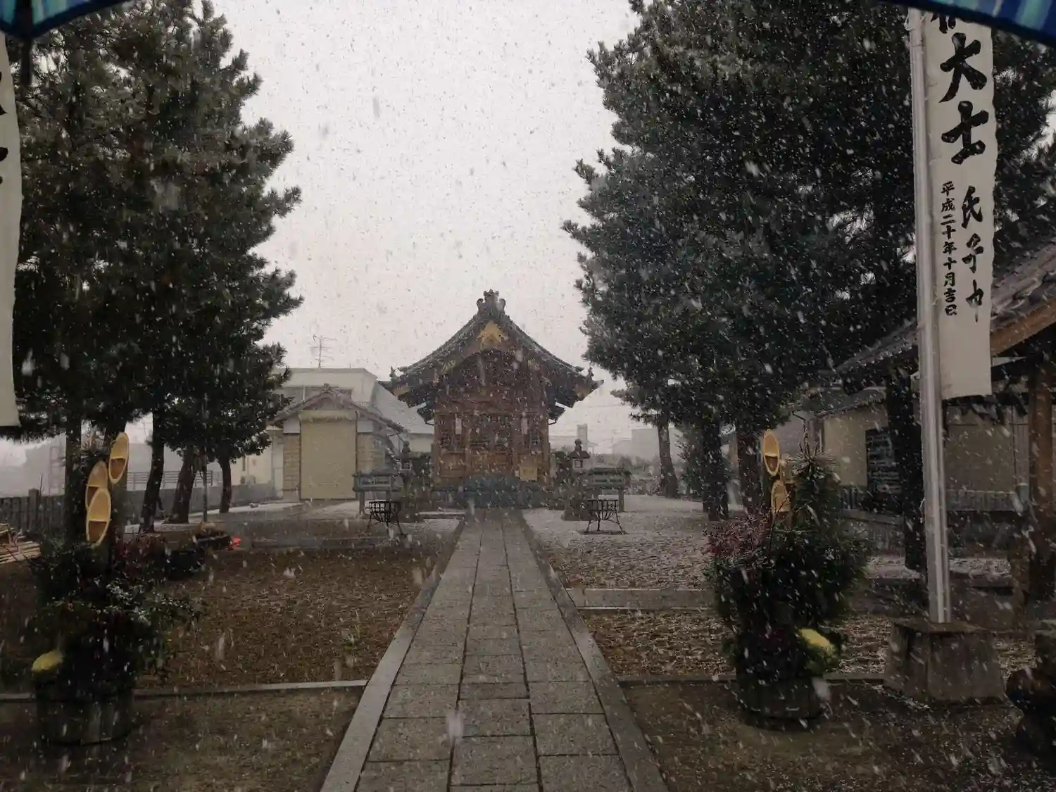 正月から雪がふってた