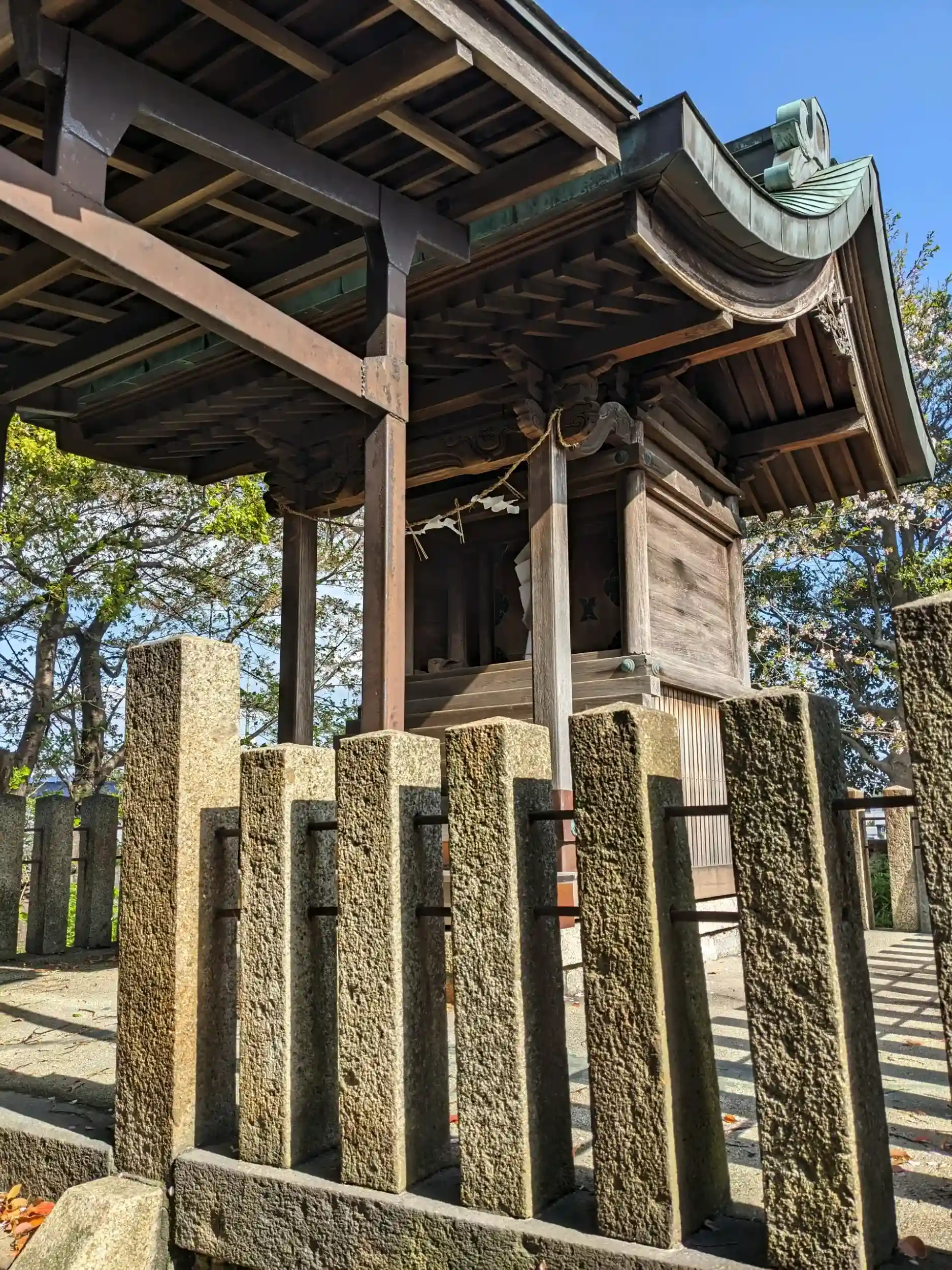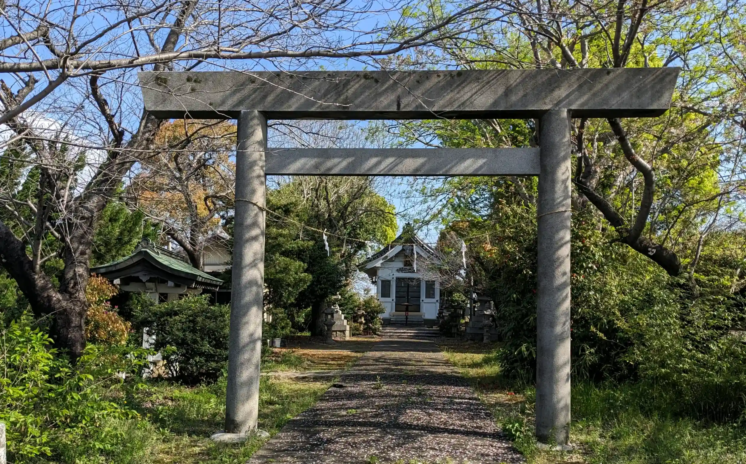 小さな神社ですが、桜の花が朝風に舞うなか気持ちよくお参りさせて頂きました。