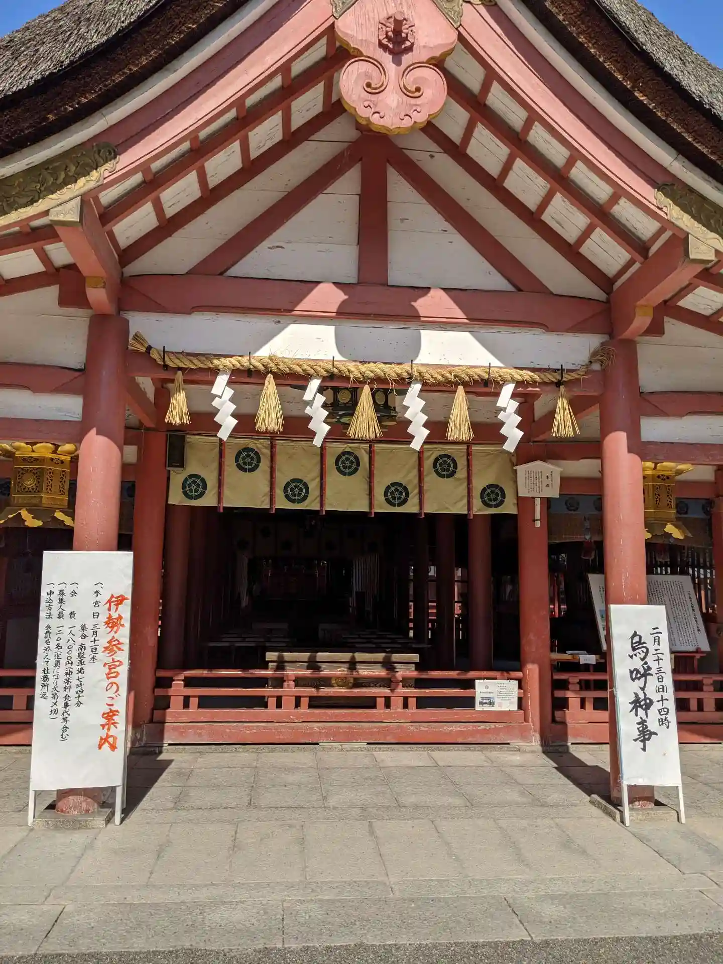 拝殿の全景です。前面は掃き清められていて、立ち入り禁止です。