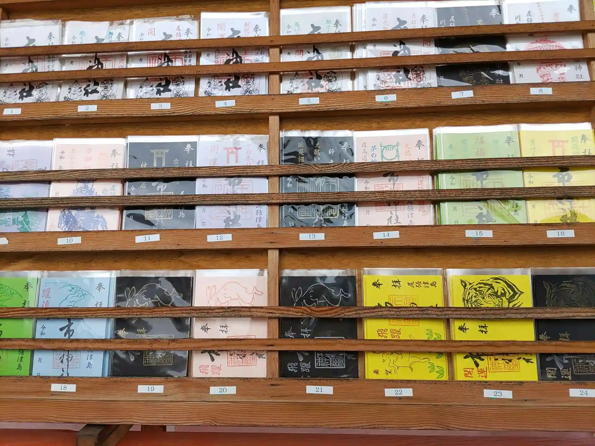 御朱印はすべて書置きですが、その種類の多さや、カラフルさに驚きながら楽しく選びました。