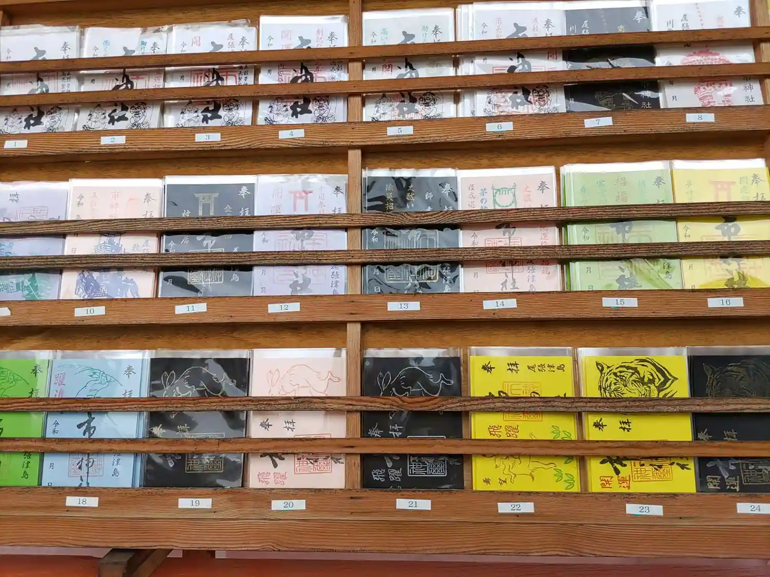 拝殿前に五十種類ほど書置き御朱印が