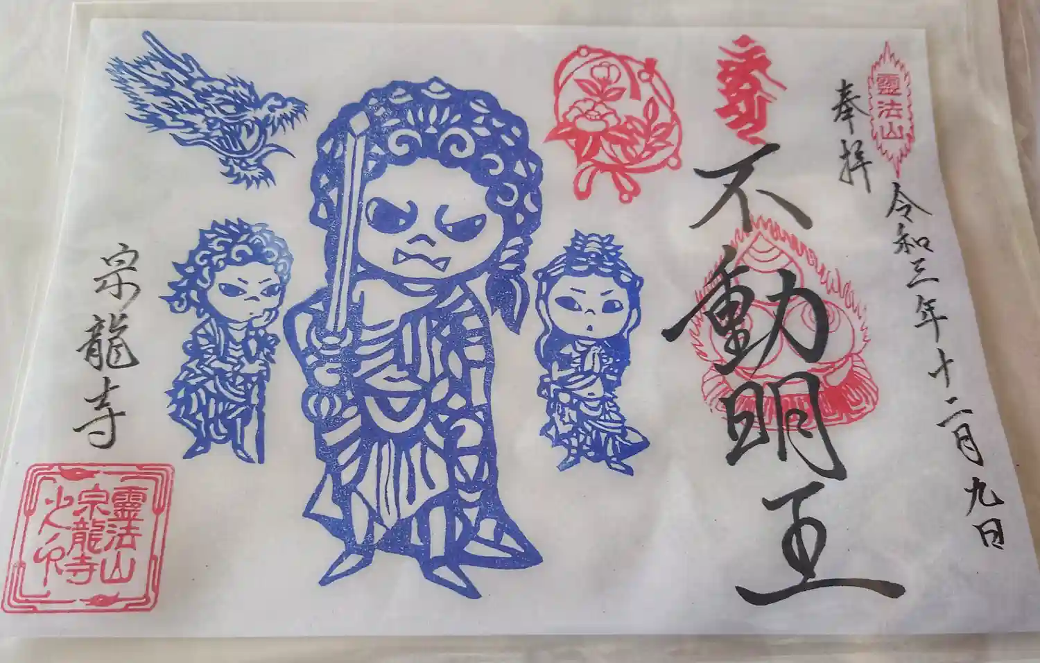 今月のお不動さまの御朱印は