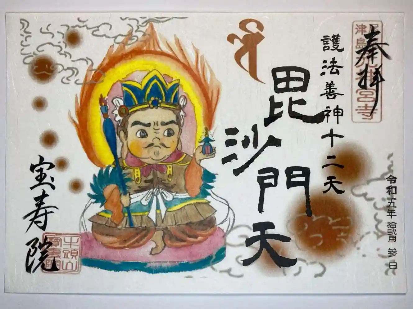 ご本尊は薬師如来。十二天の掛け軸を所蔵する。ビシャモン天はその1尊。