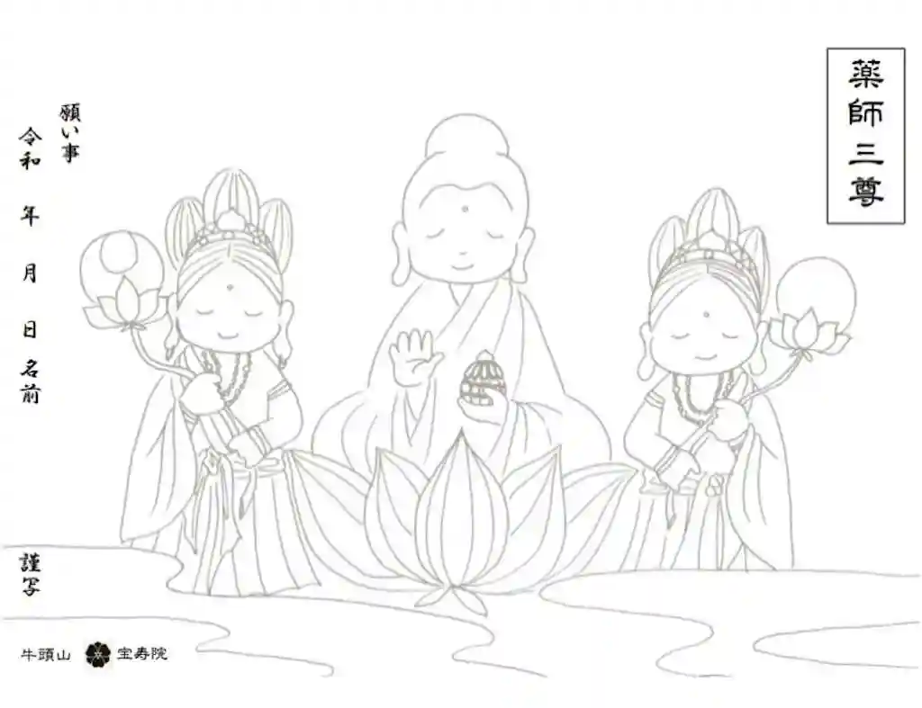 真ん中に描かれている仏様はお薬師さま。