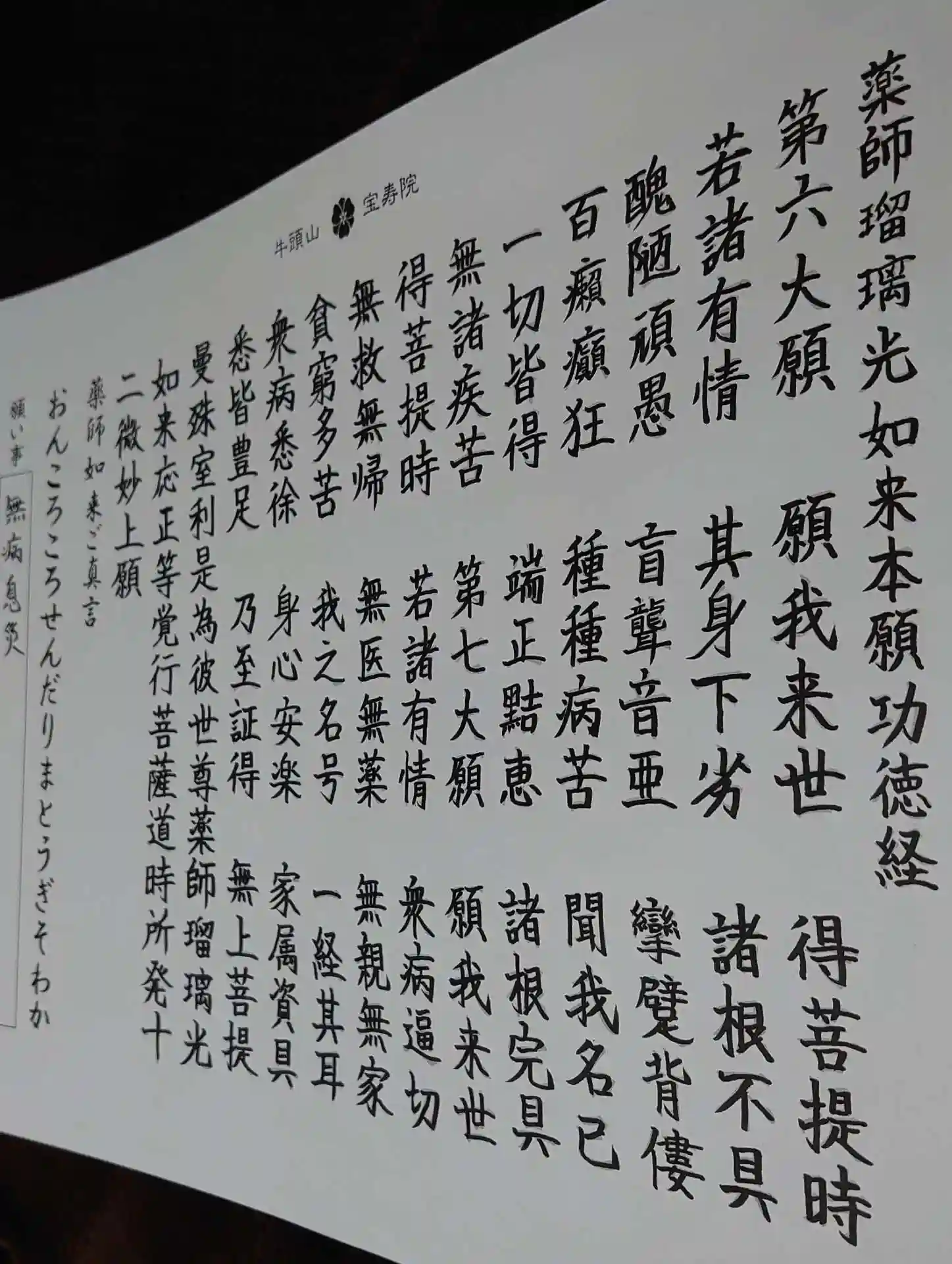 私も普段は般若心経を写経していますが、薬師様の写経は初めてでした。