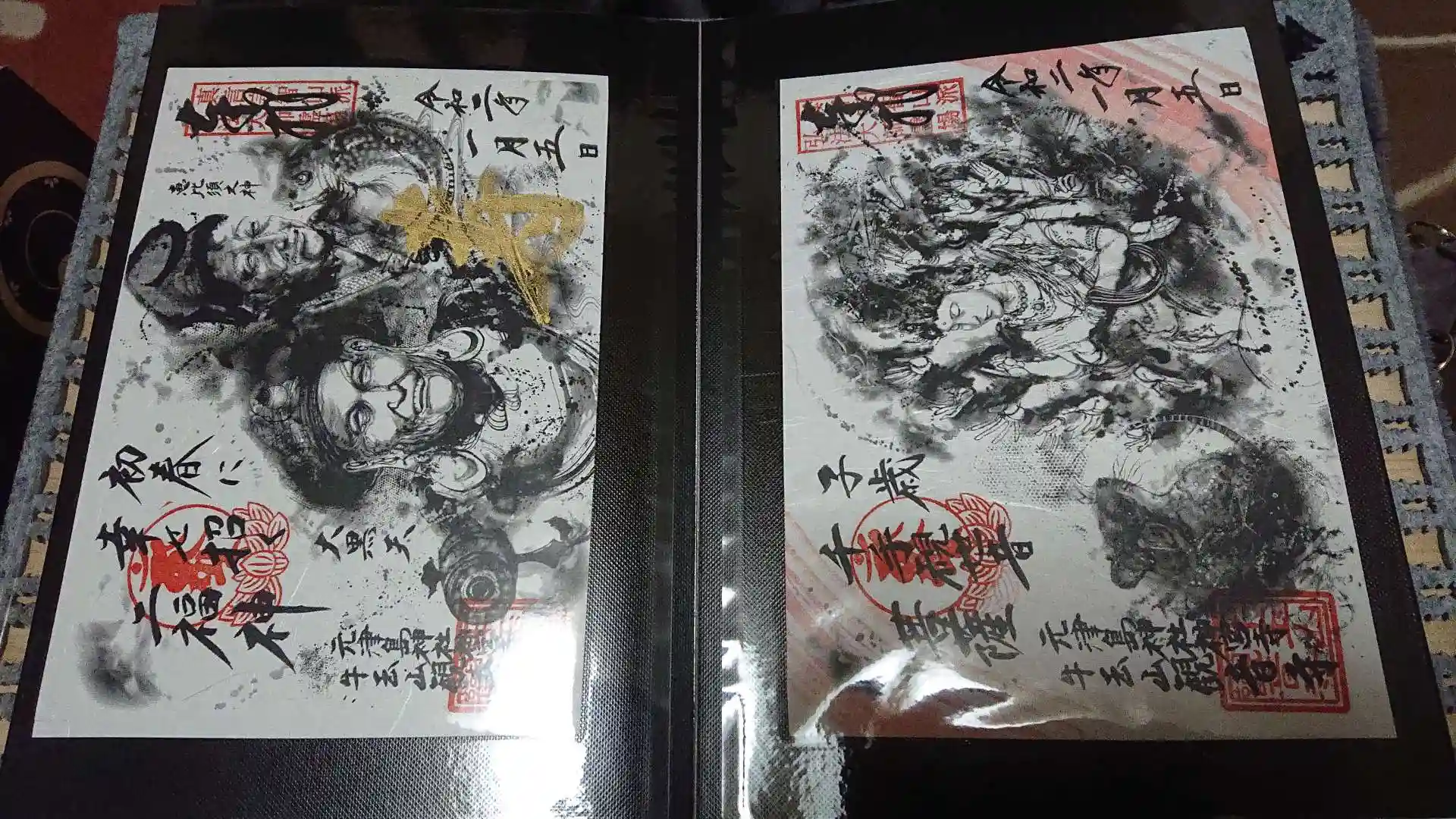 書き置きの御朱印(特に見開き)を御朱印帳に上手く貼れる自信が無かったので😓B5サイズのフリーアルバムに貼る事にしました。