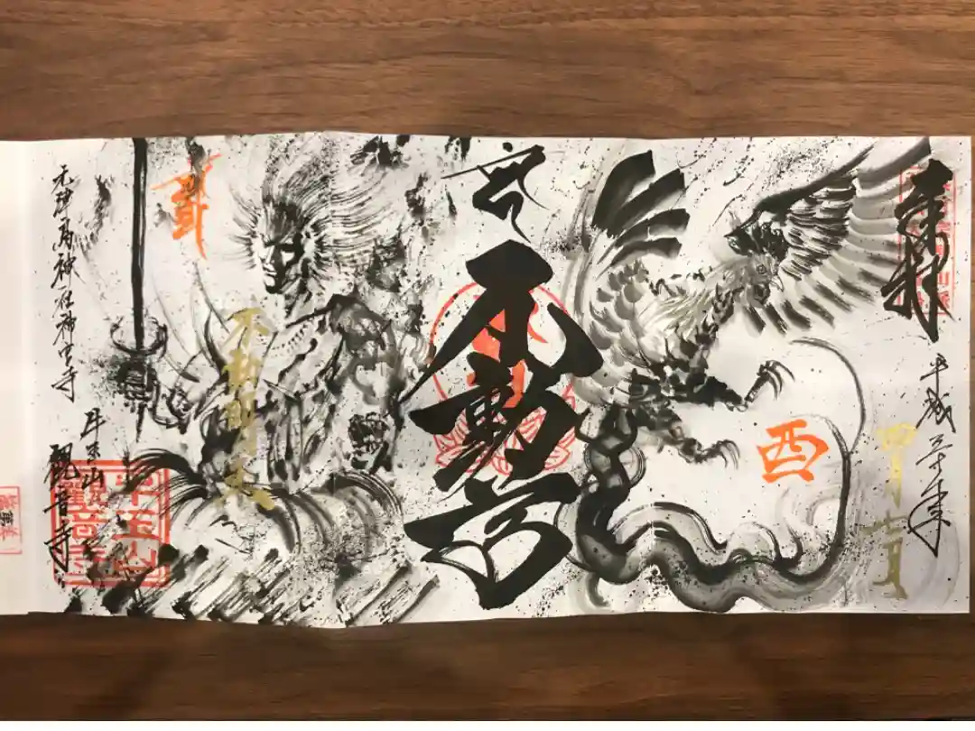 牛玉山観音寺の見開き三面アート御朱印です!