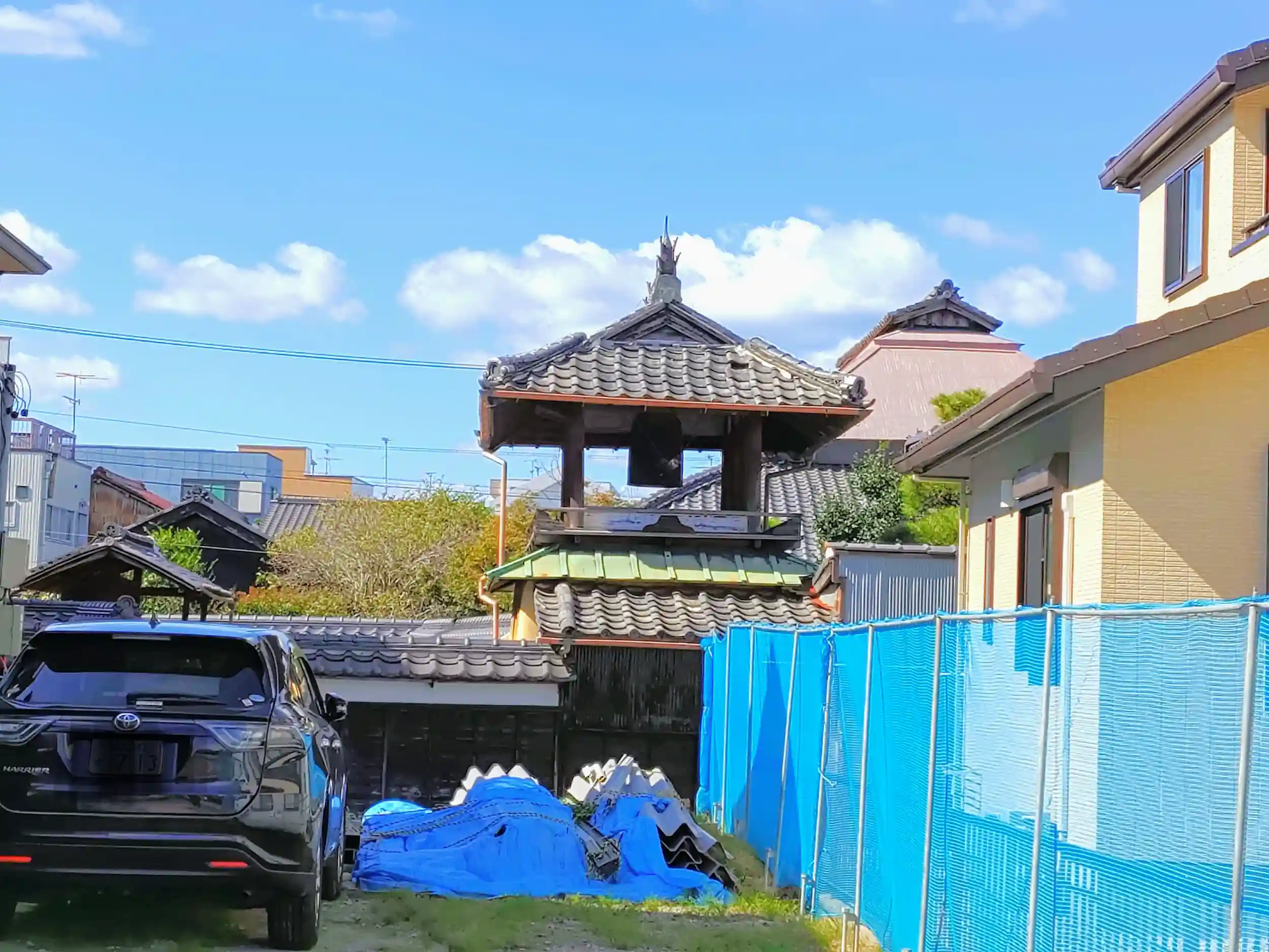 門が閉まっていて中に入れず。本堂や鐘楼が独特な形をしているみたい。見てみたい。