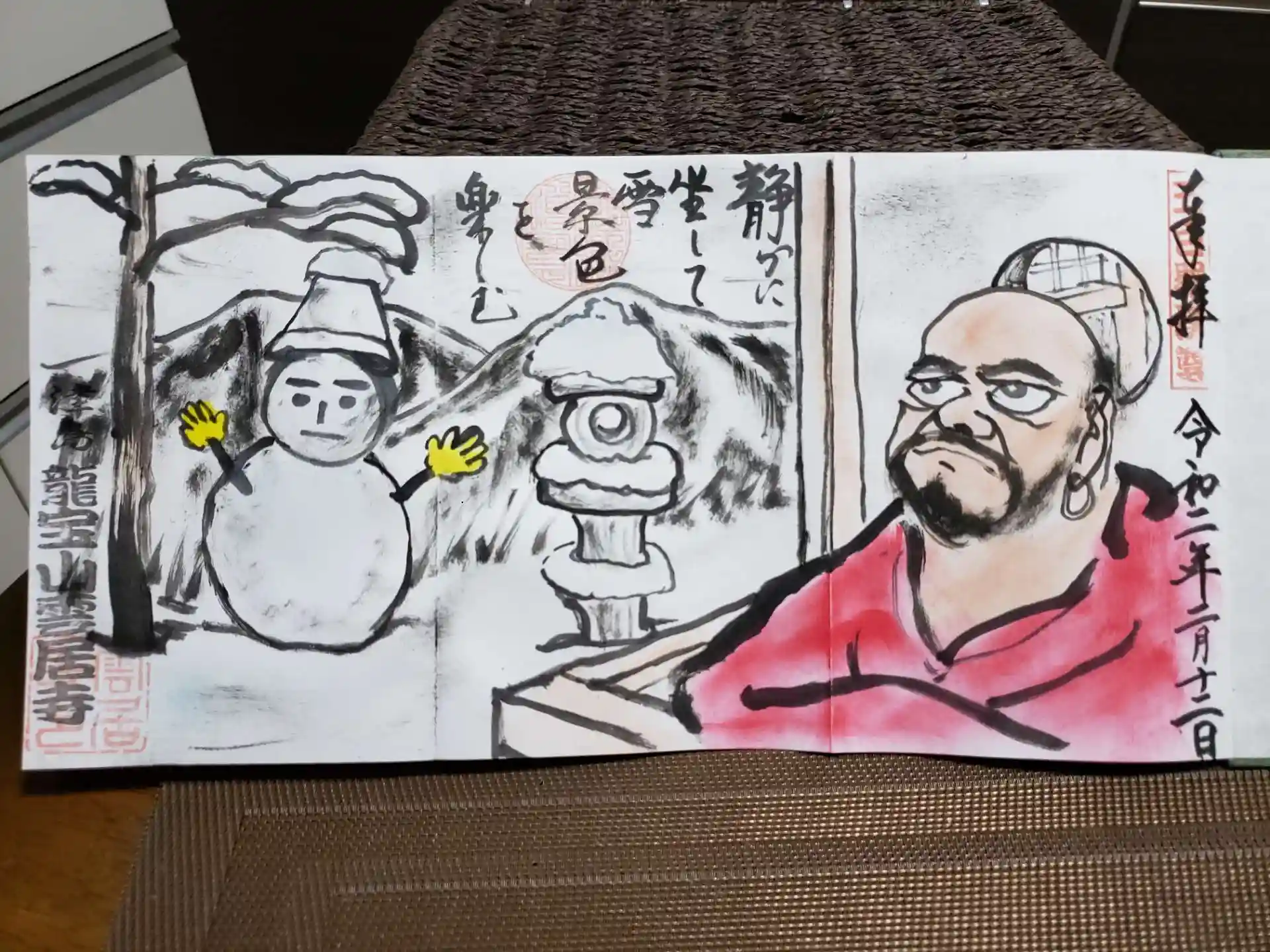 御朱印帳を購入すると表紙の達磨大師と三面の御朱印を書いて頂けます。