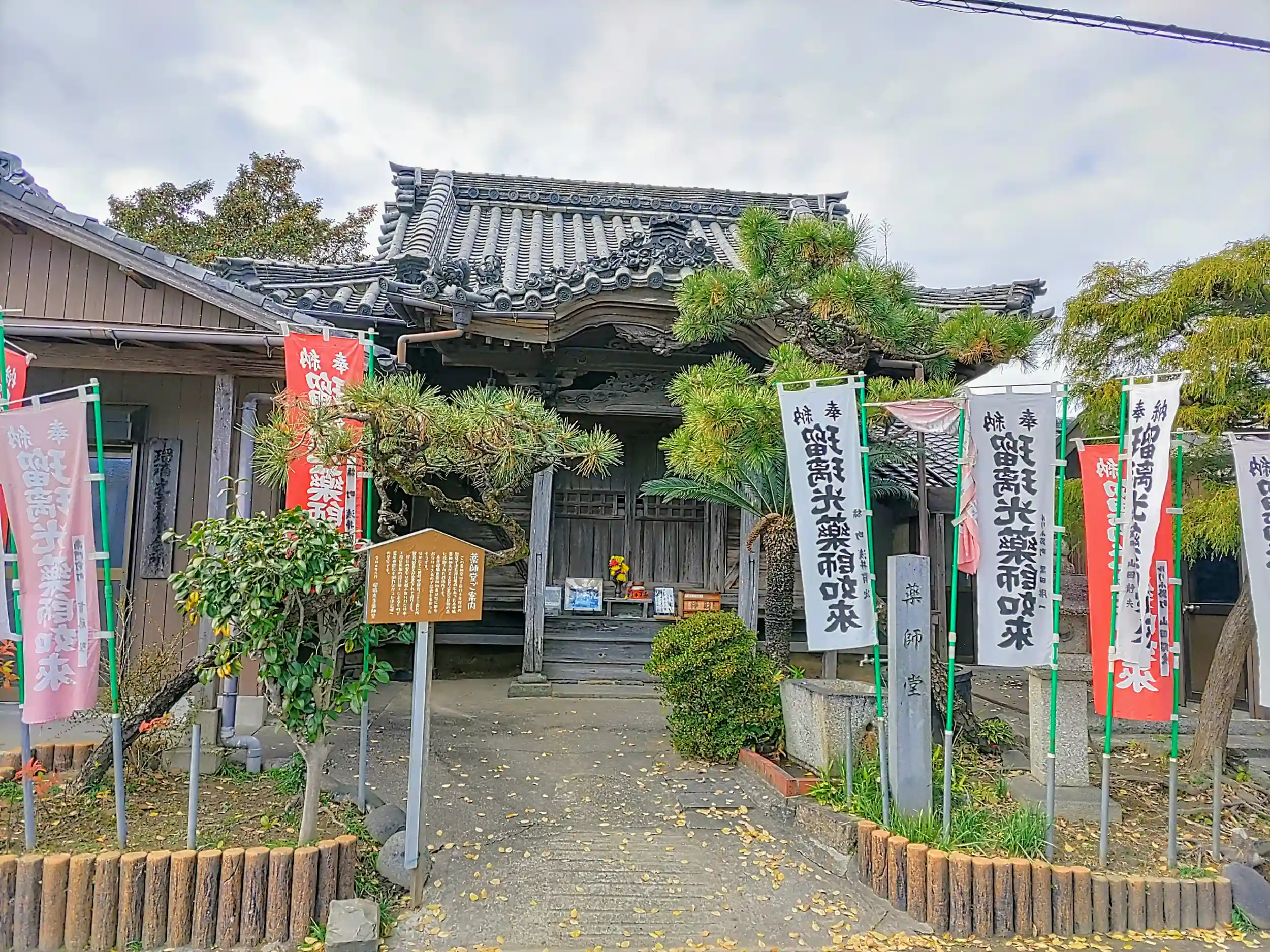 天王川公園のほとりにある薬師堂です。