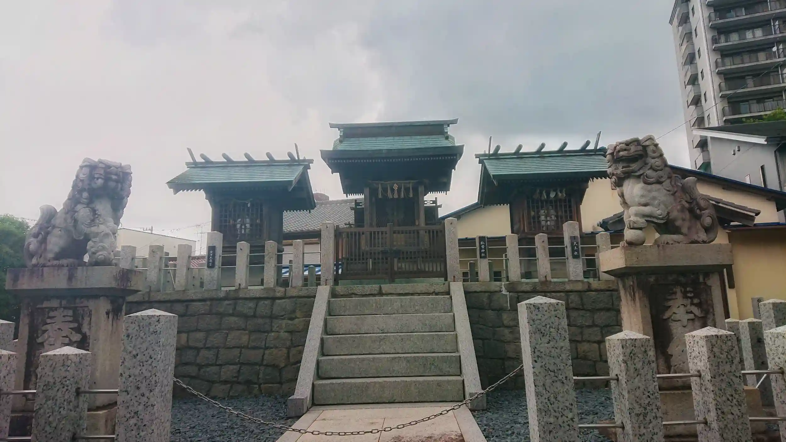 拝殿はなく本殿の左右に境内社の