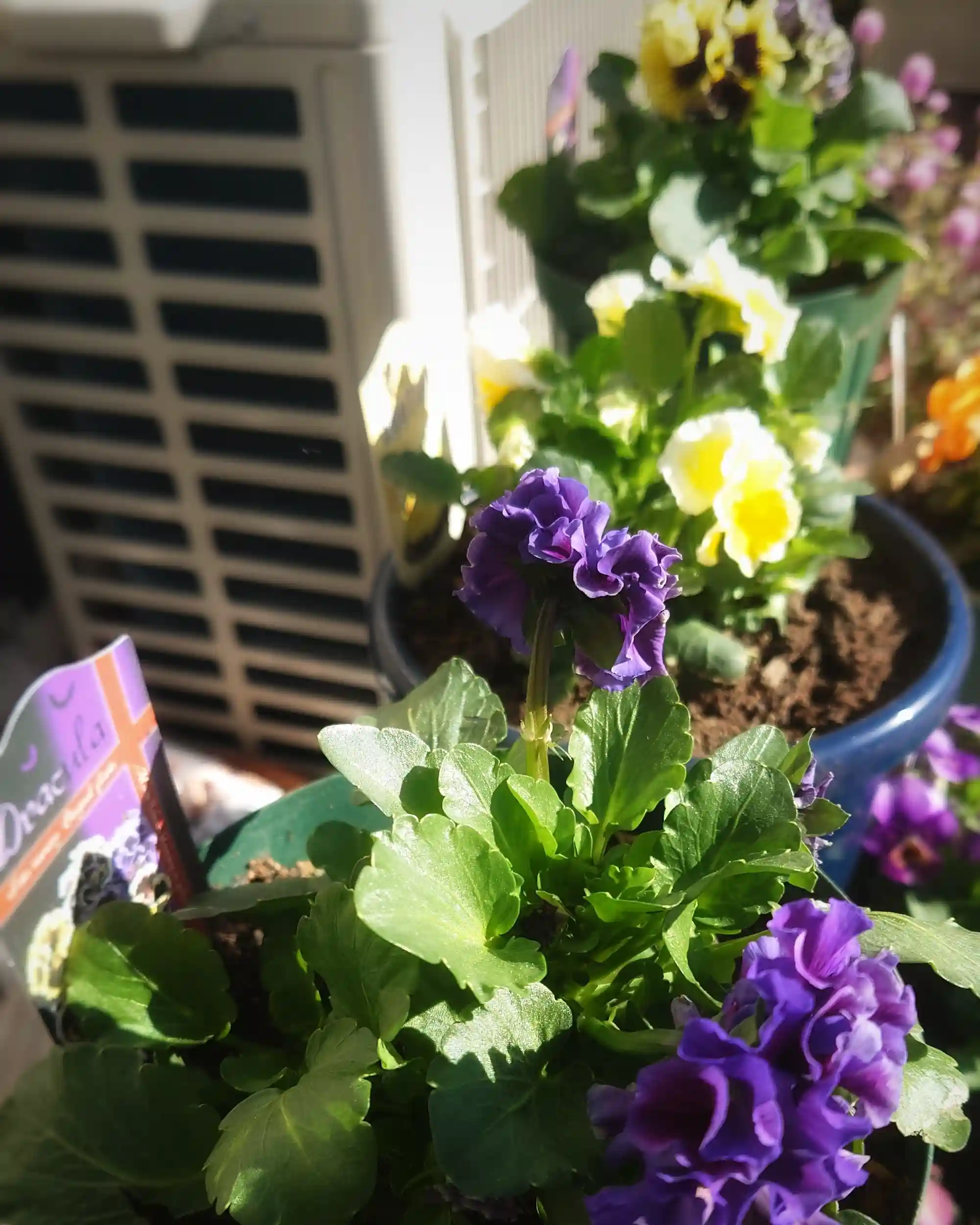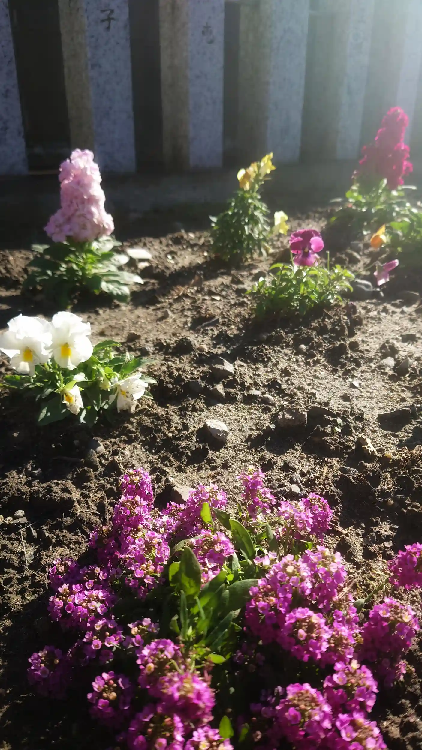 境内に植えられたビオラが