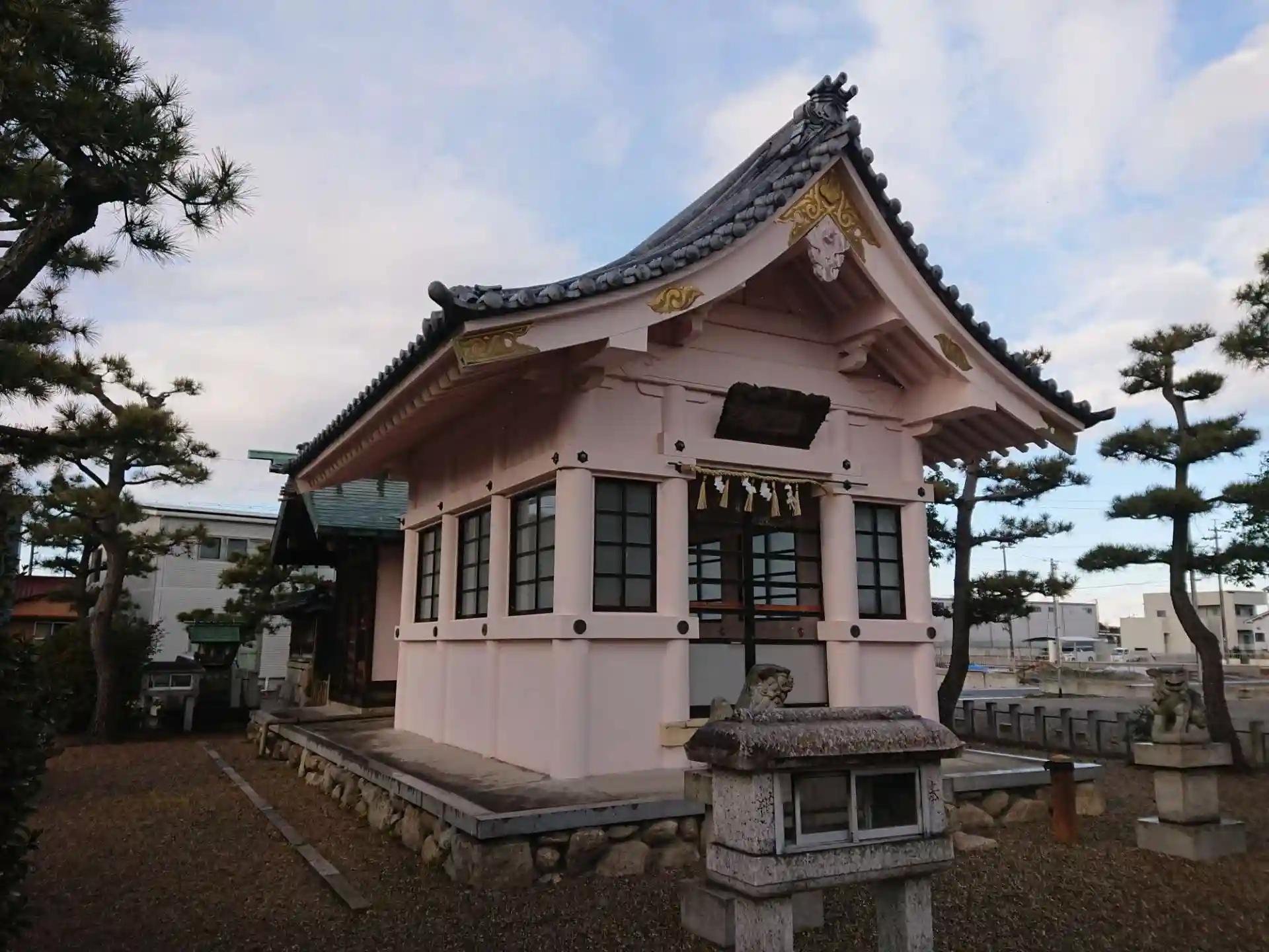 鳥居は白く手水舎や拝殿はピンクで綺麗です。