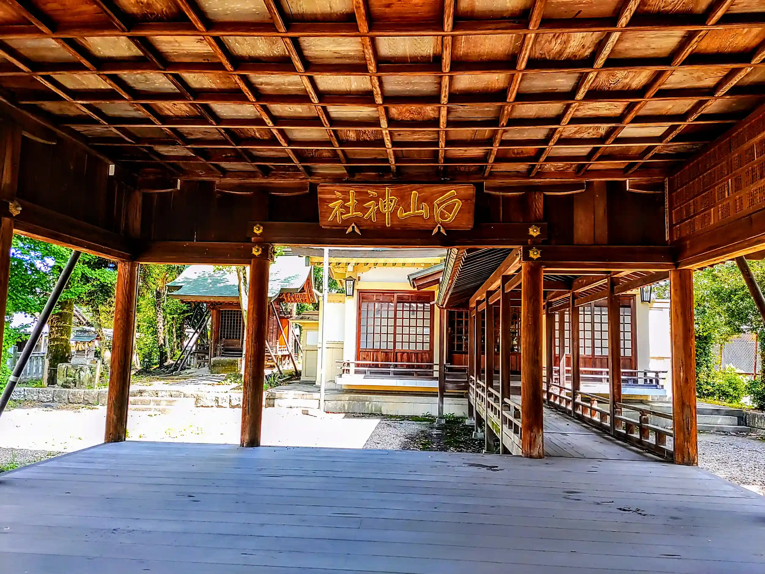 通常、拝殿から本殿につなぐ建物は一直線だが、こちらの白山さんは拝殿から本殿に向かう線が少し右にずれている。これがなかなか面白味があって良い。